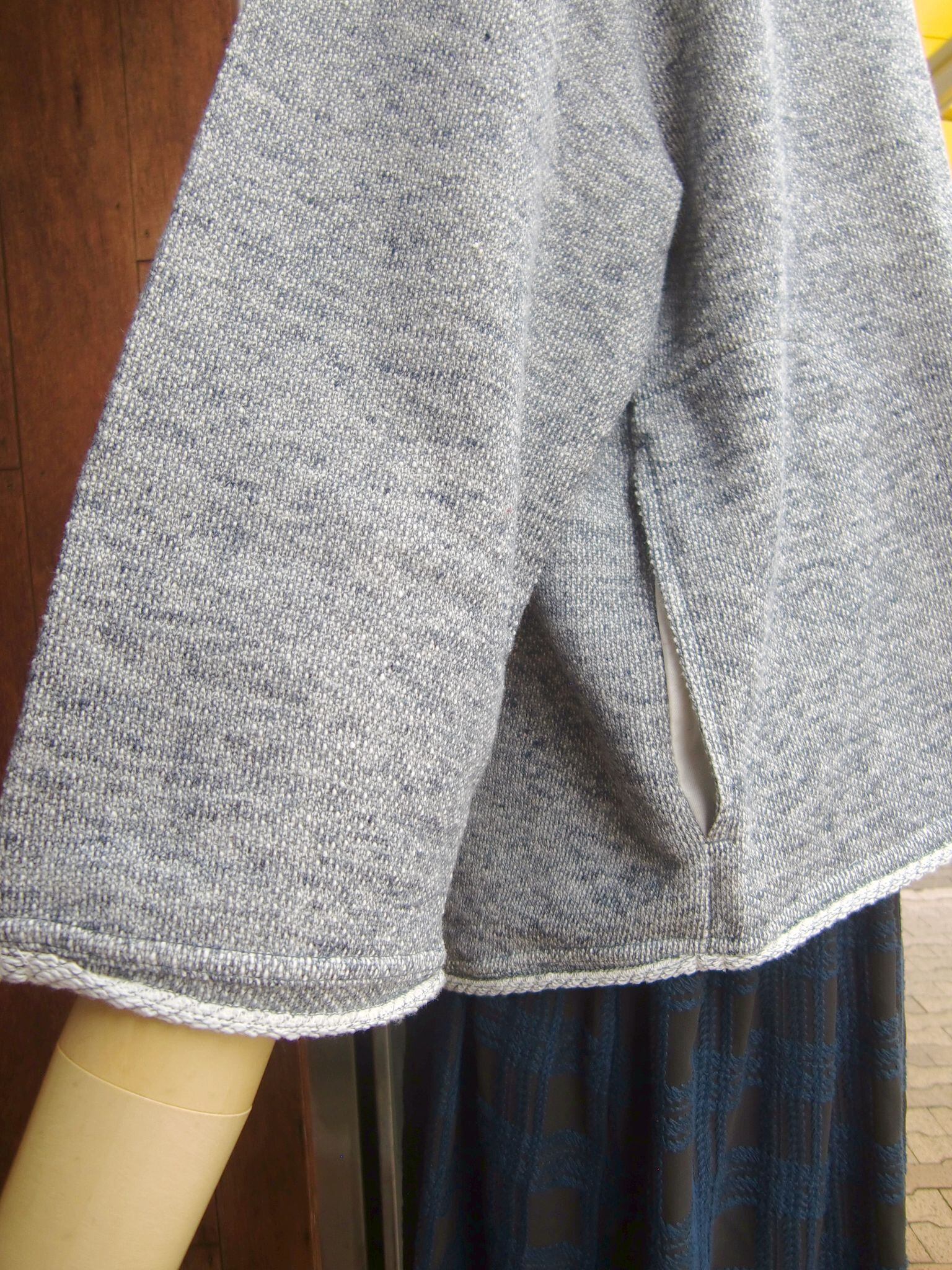 両サイドにポケットがあるので、暖かくなればアウター的に使えるアイテムです。