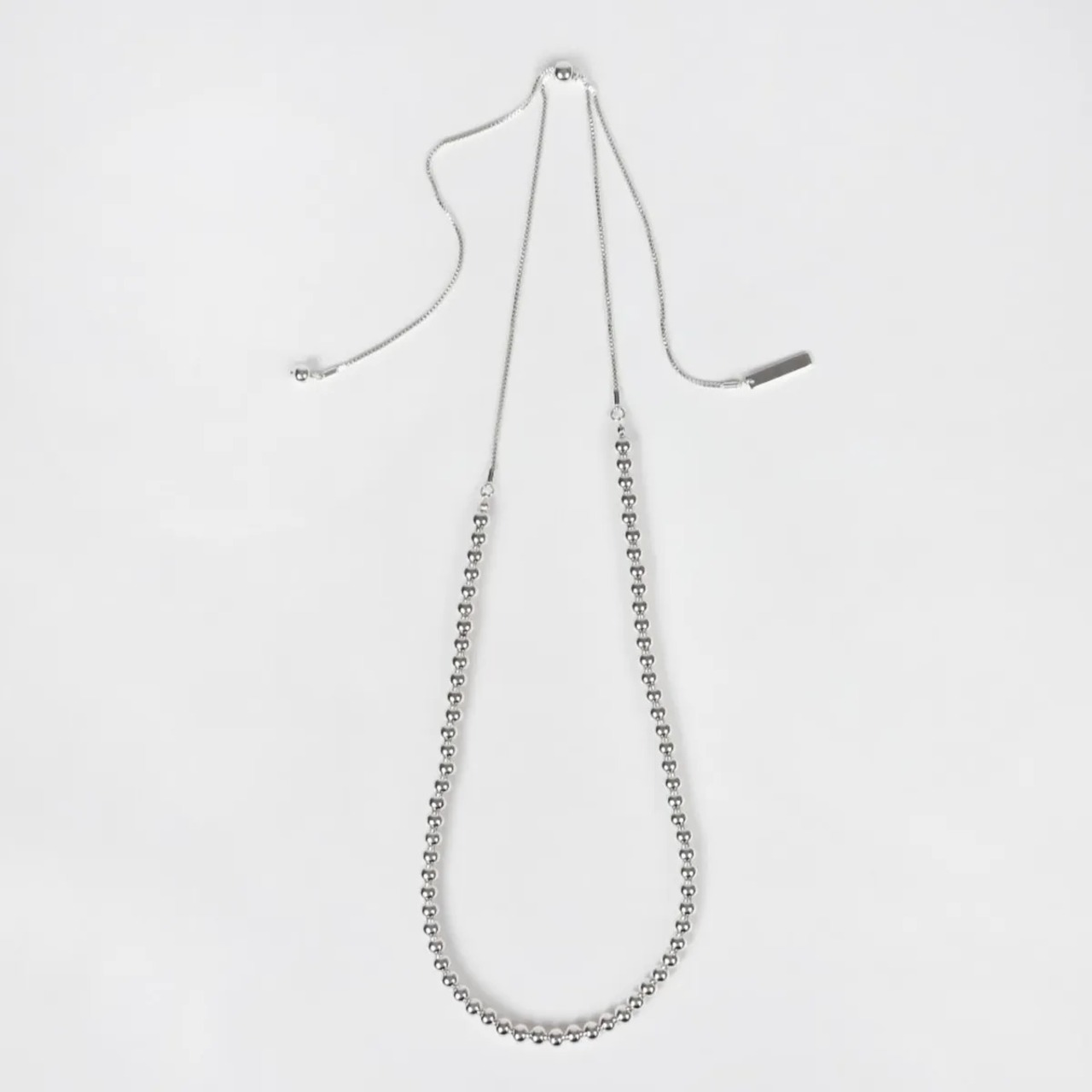 コーディネートに合わせて長さをアレンジできる便利なネックレス。