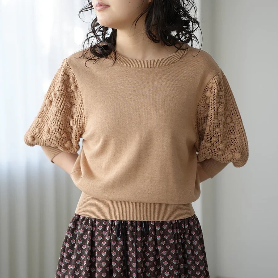 爽やかな質感でサラッとした肌触りが特徴の≪マノン≫レースパフスリーブニット。