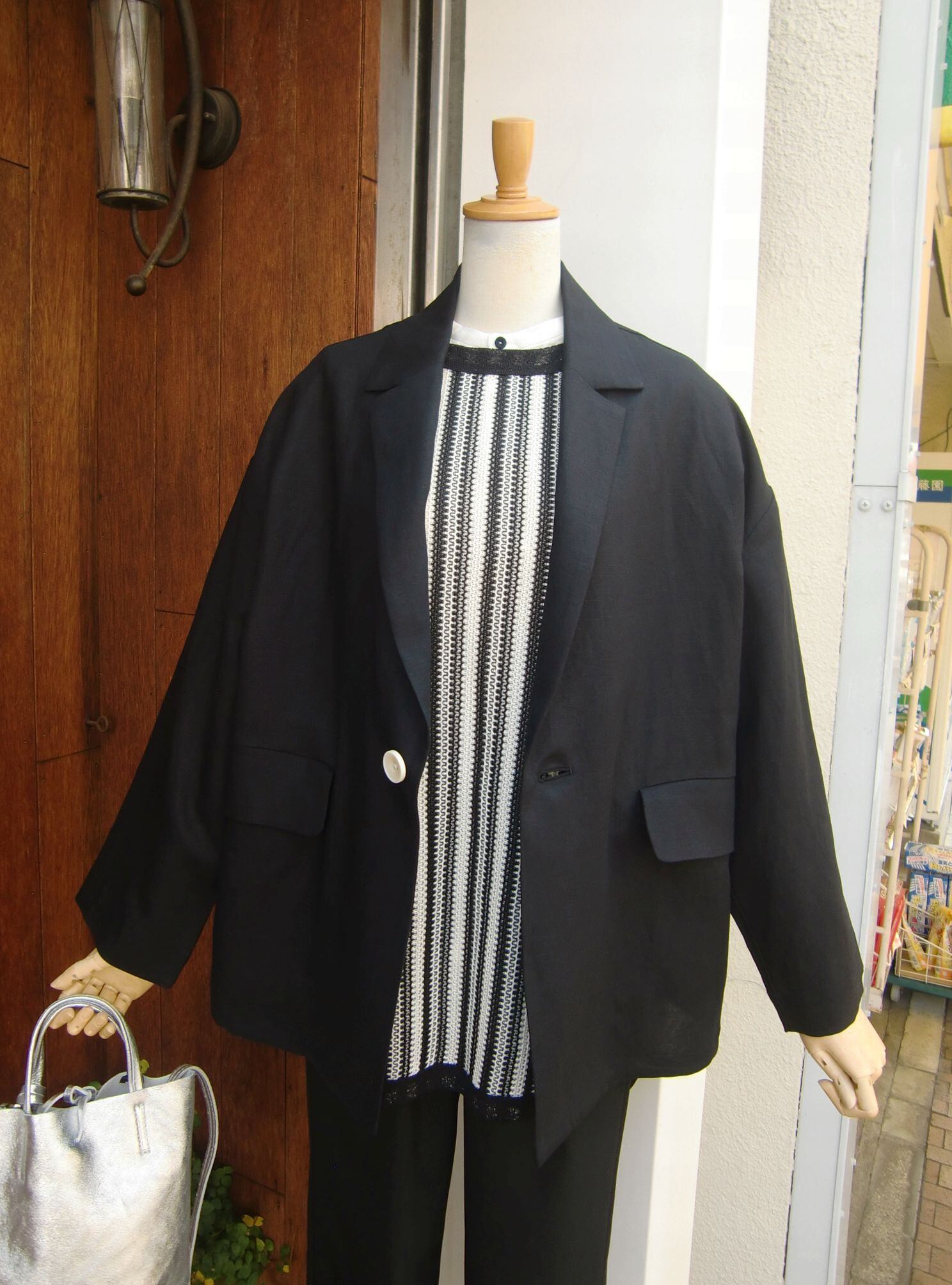 少しドロップさせた肩周りにはゆとりを持たせてあるので、