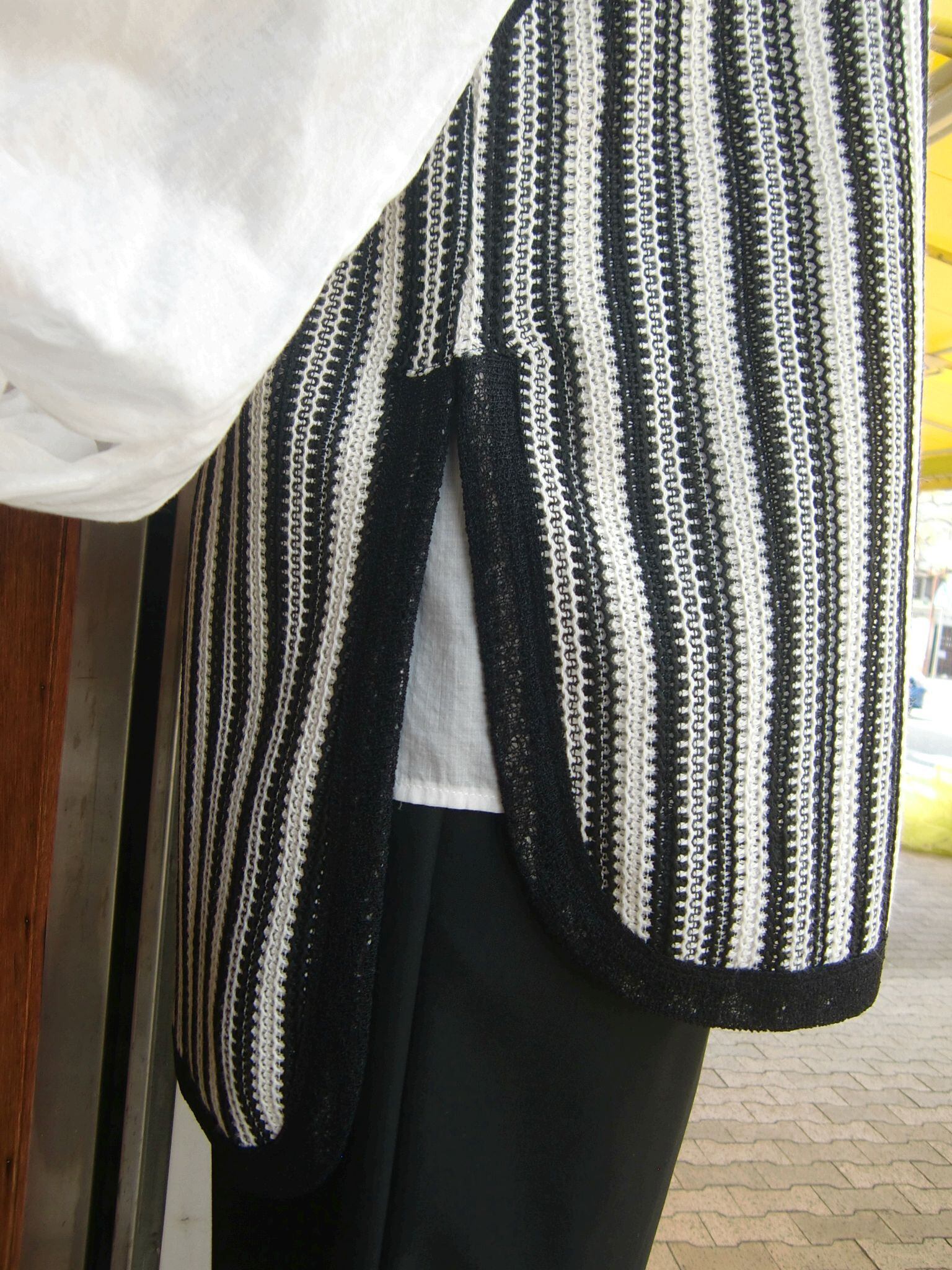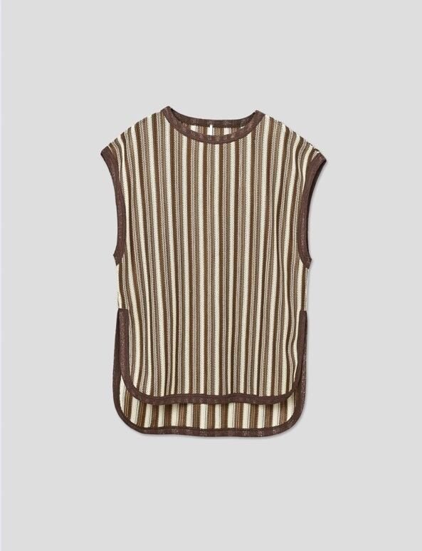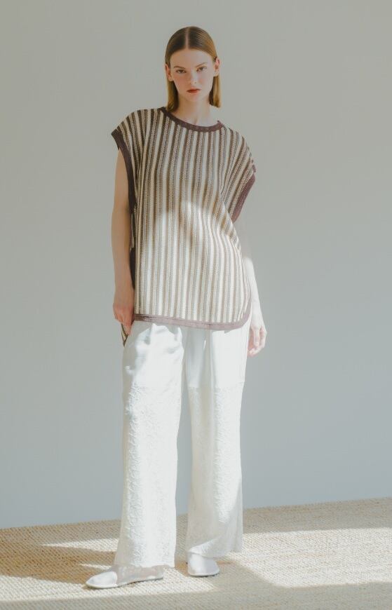 ストライプのレース柄を活かしたストンと縦に落ちるシルエットが印象的なトップス。