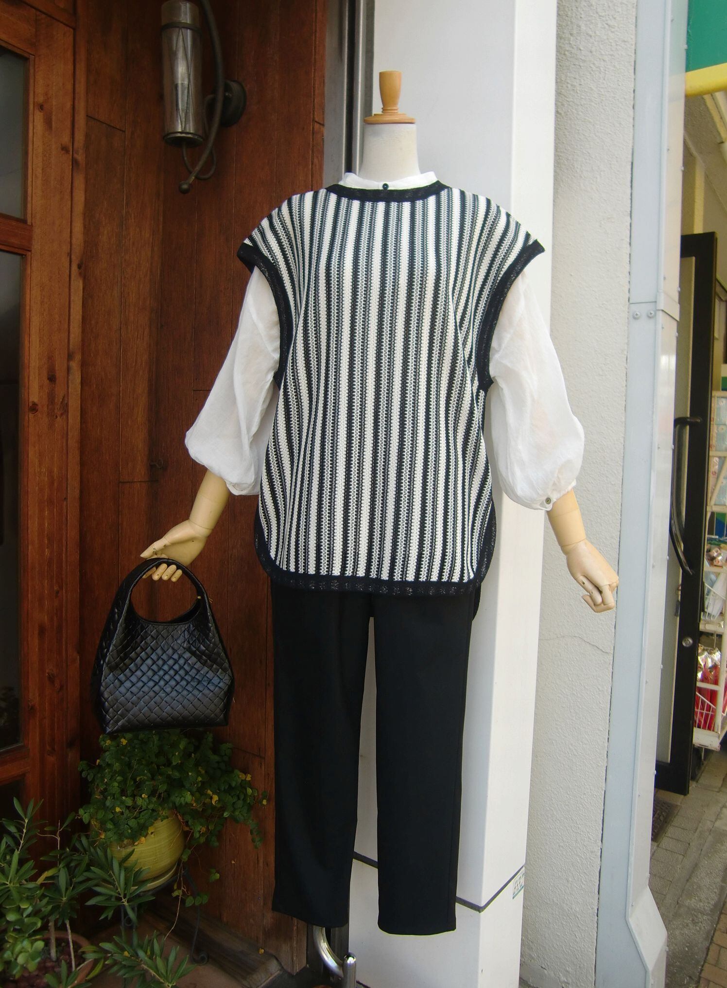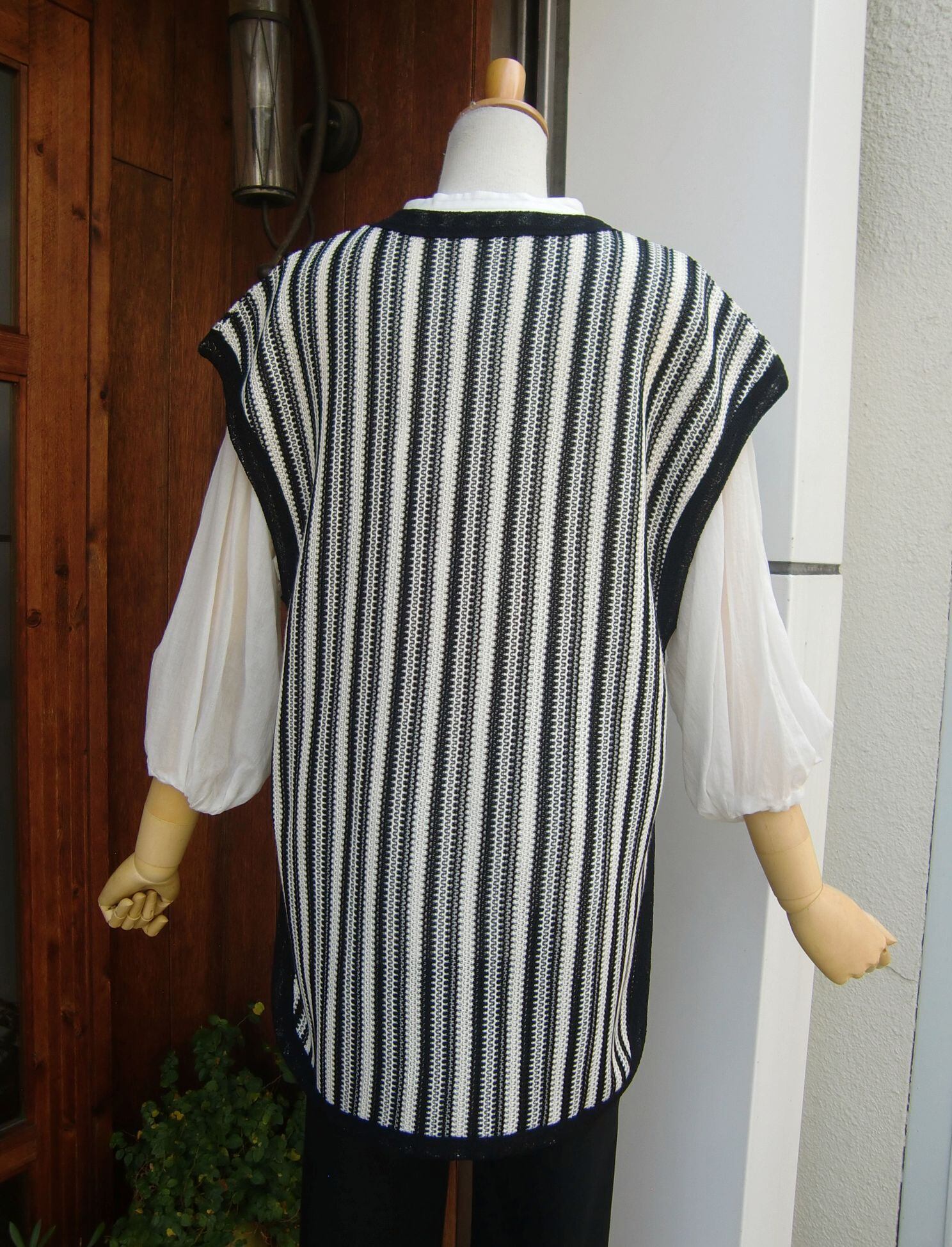 ◇重ね着でも、単品でも、どちらもサマ見えする≪ホワイト≫ストライプ・ニットベスト。