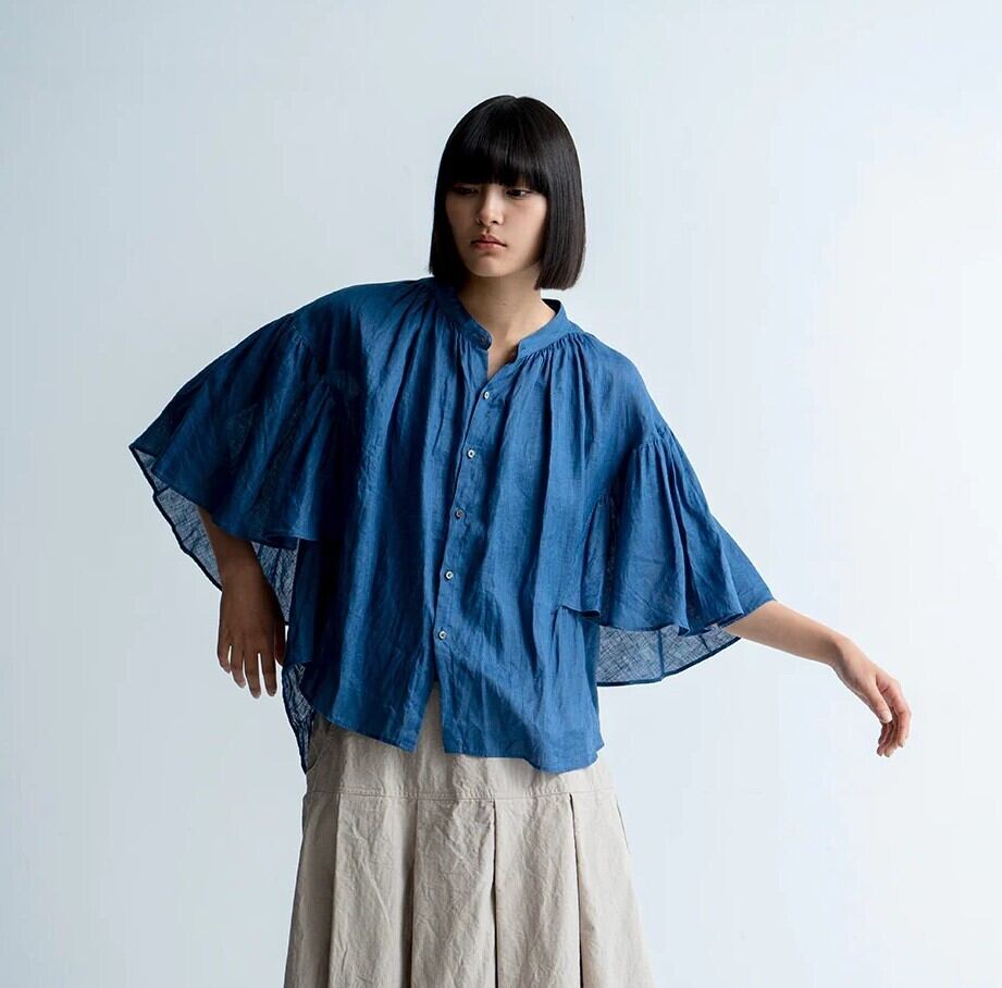 ◇60番手の麻素材に洗いをかけて柔らかく仕上げた≪マノン≫アミカルシャツ。
