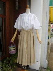 絶妙なバランスの切り替えに袖のドレープが上品さも醸し出すアイテムです。