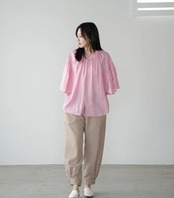 カジュアルにもキレイめにも、どちらも使えるおすすめブラウスです。