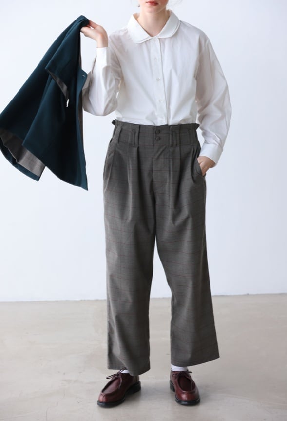 グレンチェック素材を使った≪ケレン≫変形デザイントラウザーパンツ。