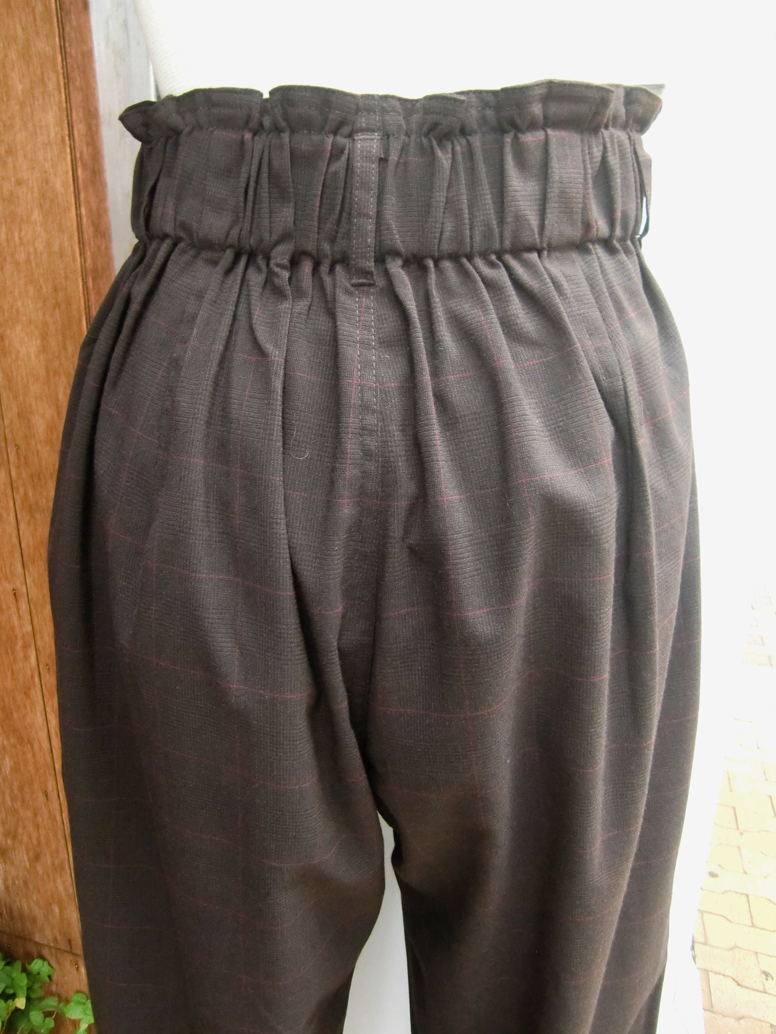 フロントはマニッシュなタック、バックはリラックできるゴム仕様&ギャザーの