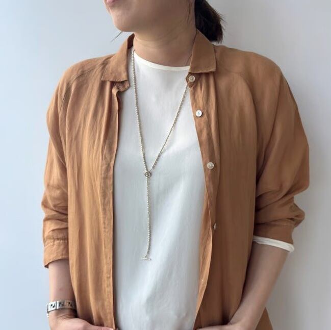 ◇しなやかな線のような印象をもたらす直径3mmのシェルパールを使ったネックレス。