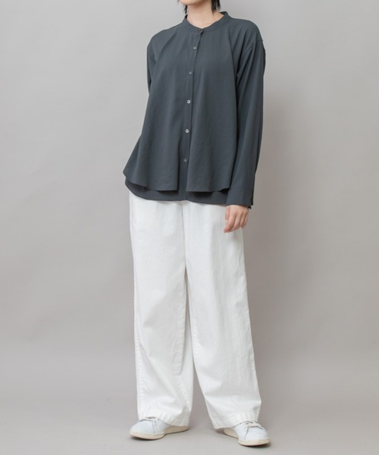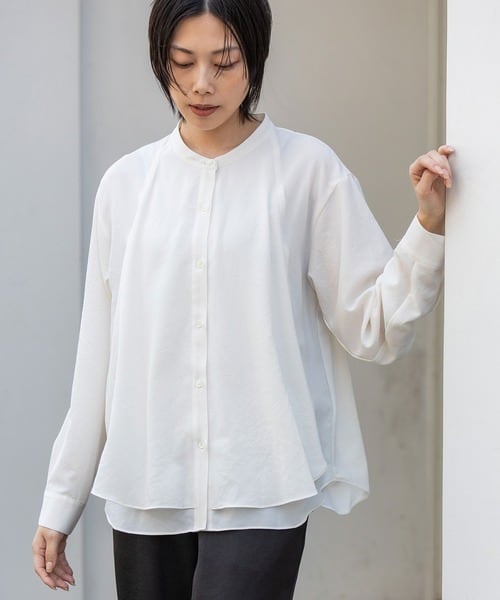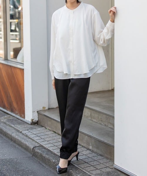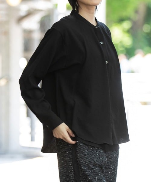 シンプルなのでデイリー使いしやすく幅広いコーディネートに対応できるブラウスに。