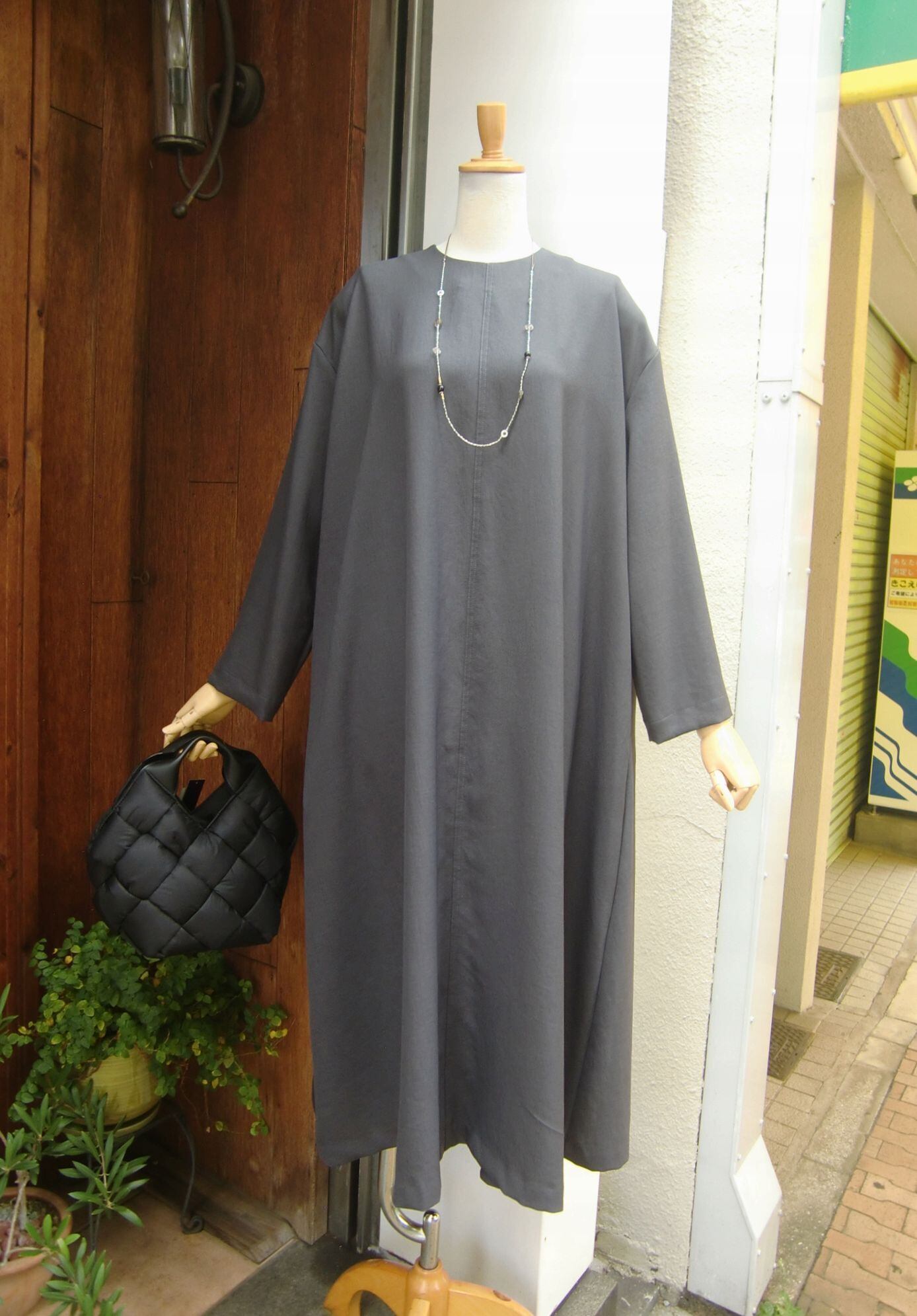 Aラインのワイドシルエットが動きのあるドレープを出してくれる大人なワンピースです。