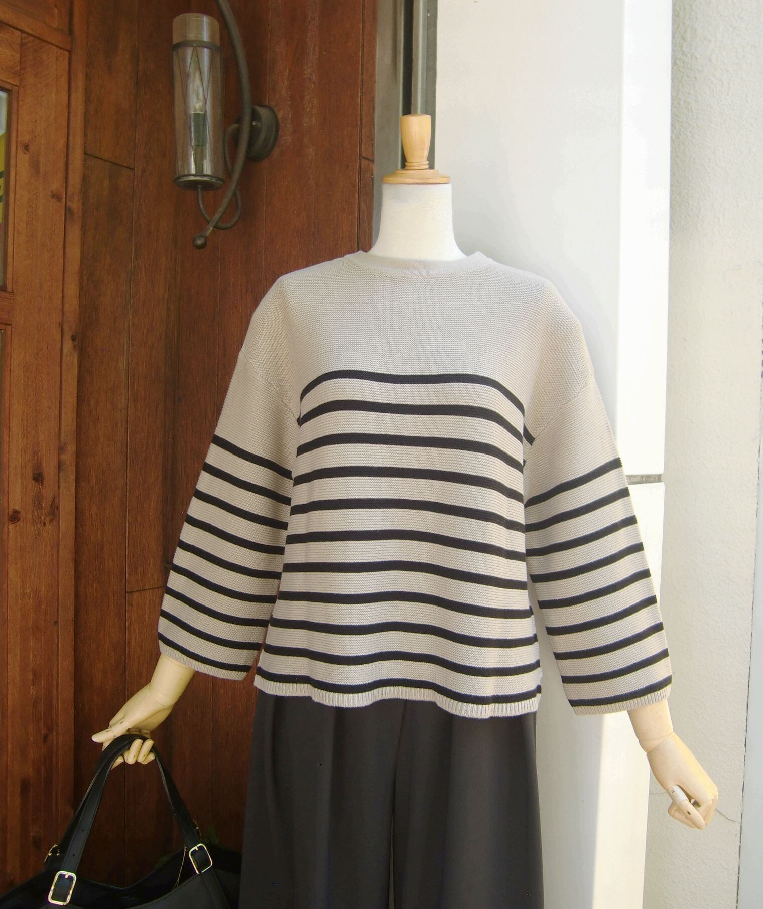 ≪ソソット≫が毎年秋の定番として展開しているボーダー前後2WAYコットンニット。