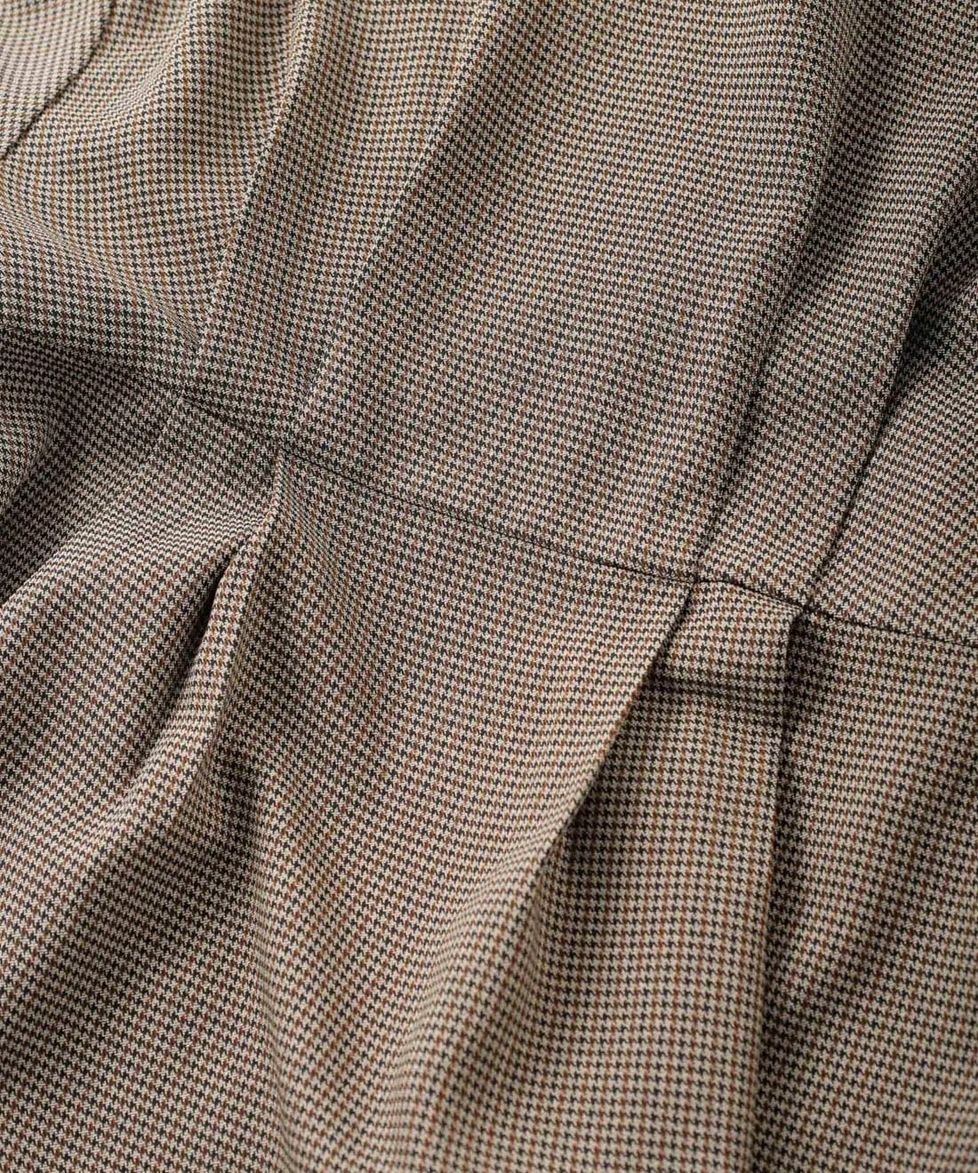 ウエストに切り替えを入れ、タックをいれたペプラムシルエットがポイントです。
