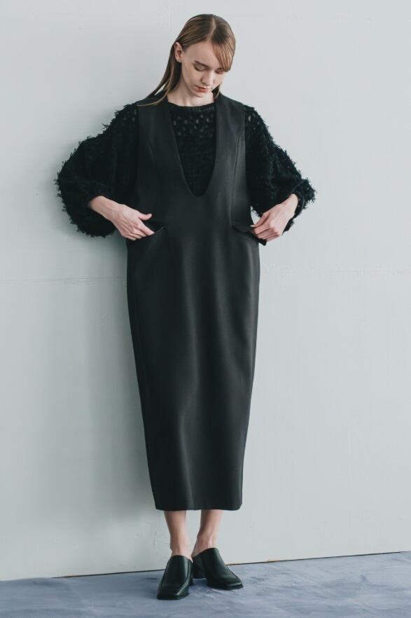◇深めのUネックラインに丸みを持たせ、滑らかで女性らしい雰囲気に仕上げた