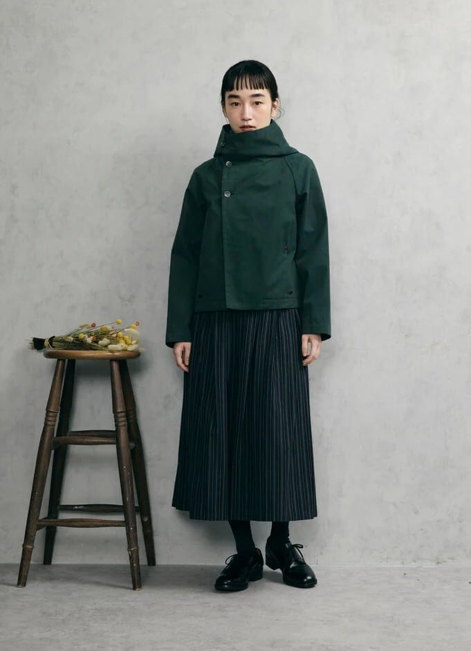 ワイドパンツやスカートと相性の良い、コンパクトな着丈のジャケットです。