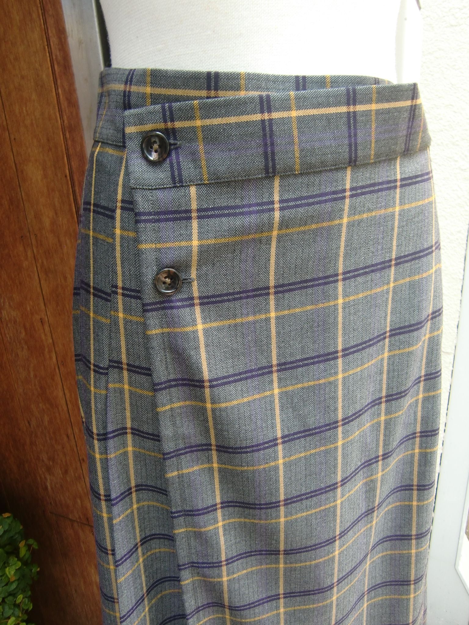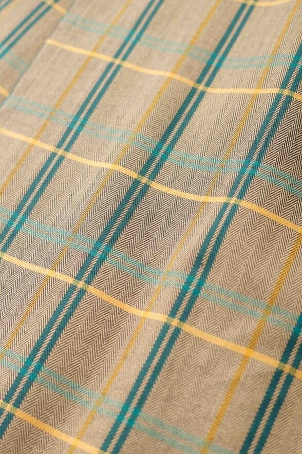 巾広めのプリーツとチェック柄でカジュアルな印象もありつつ、