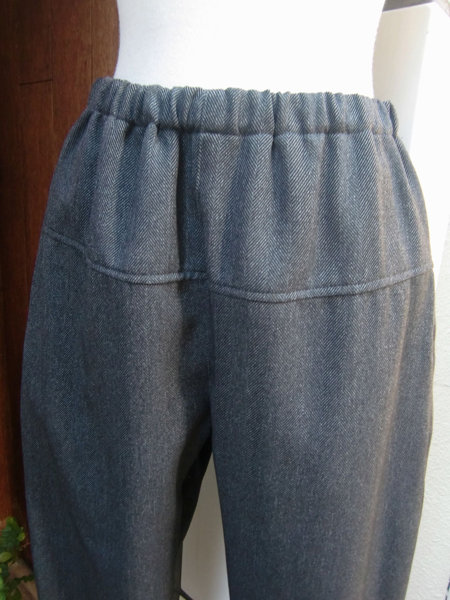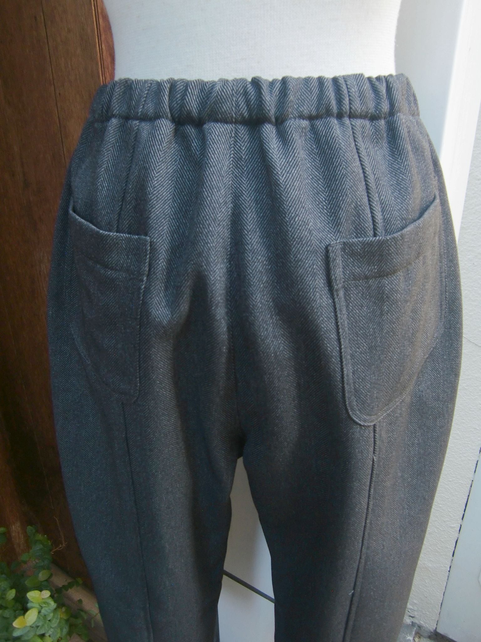 ウエストはゴム+スピンドル仕様のストレスフリーパンツ。