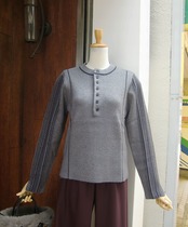 ◇2色の糸を使ったリブ編みをベースに、衿ぐり・ボディーには細めのライン使い