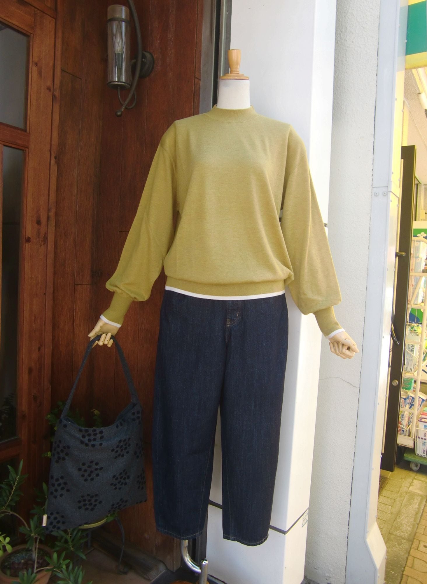 モックネックで上品な印象の首元と、程よく膨らみを持たせた袖、