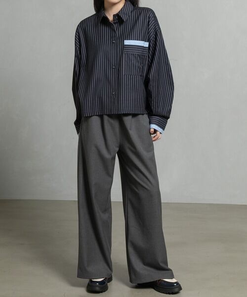 たっぷりとした分量感と落ち感のある素材が織りなす美しいシルエットのセミワイドパンツ。