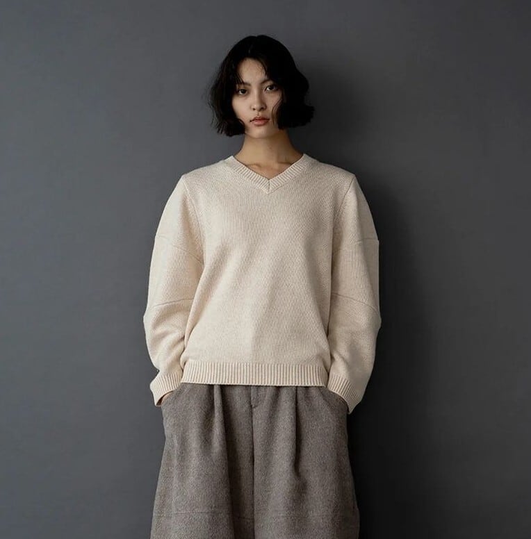 クラシカルな雰囲気に程よくゆとりを入れたVネックプルオーバー。