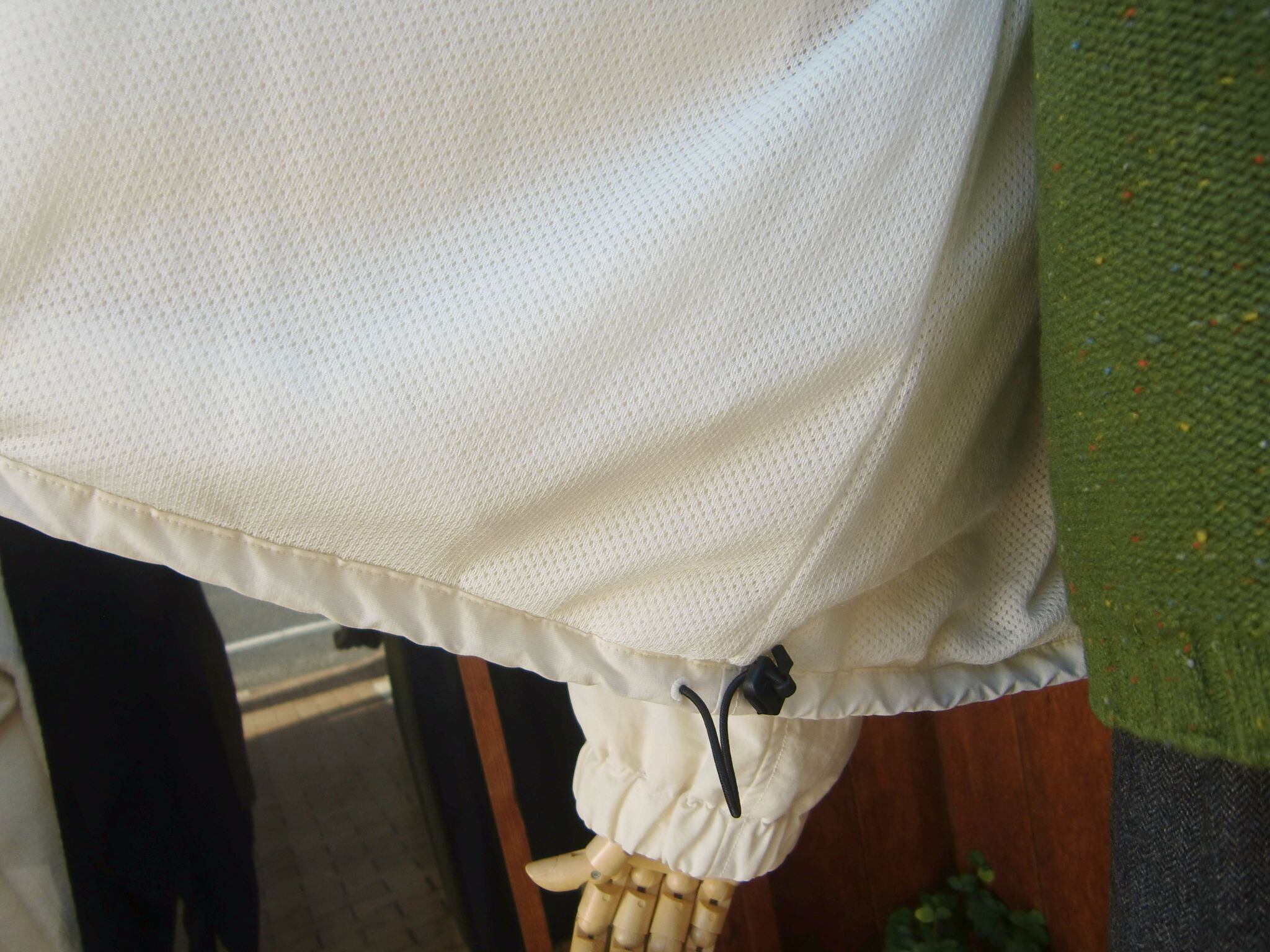 スタンドカラーと身頃裾はストレッチコードでブラウジング可能です。
