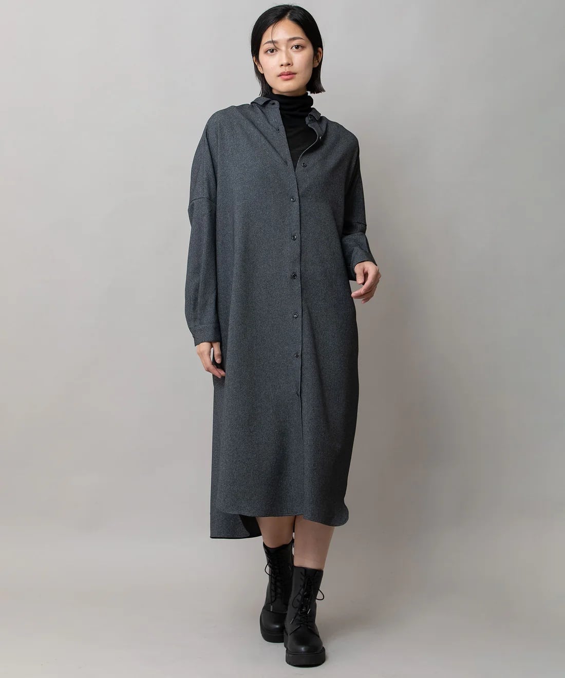 ゆったりとしたシルエットの羽織としても使えるシャツワンピです。