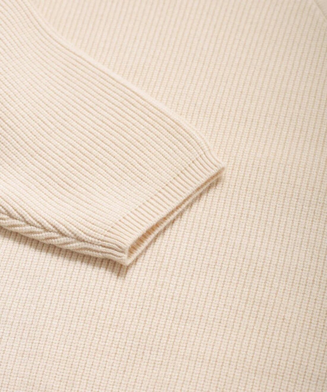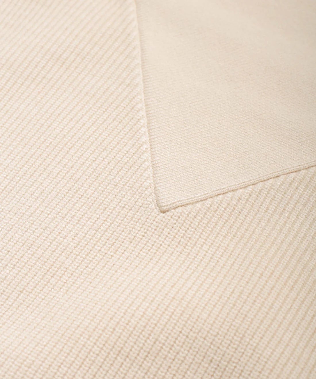 リブ編みを切り替えた深めのVラインがポイントに。