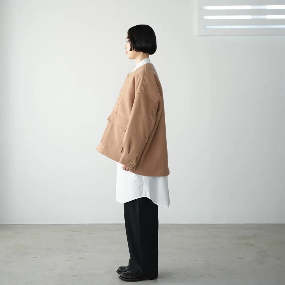 ◇肩はドロップショルダーながら立体仕立てのボックスフォルムで