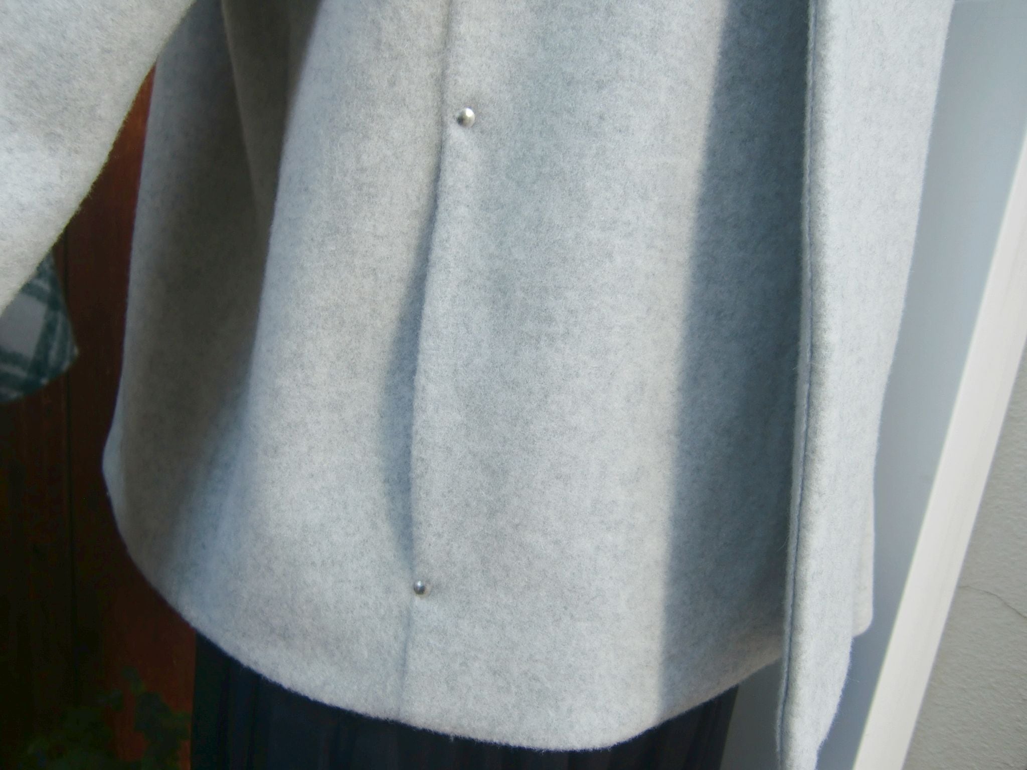 ボタンを上部に集めたマント風のシルエットも人気のポイントです。