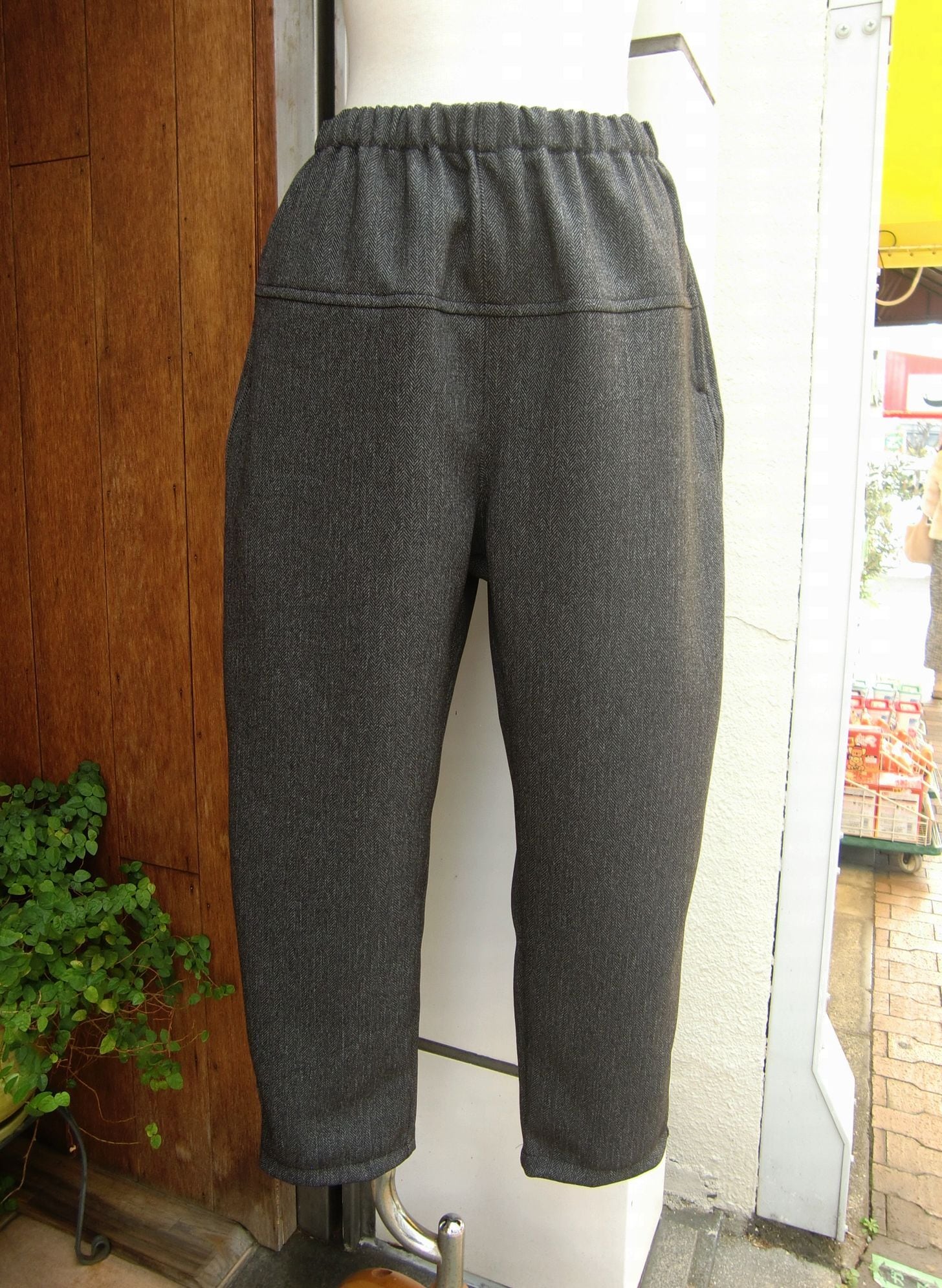 ウエストはゴム+スピンドル仕様のストレスフリーパンツ。
