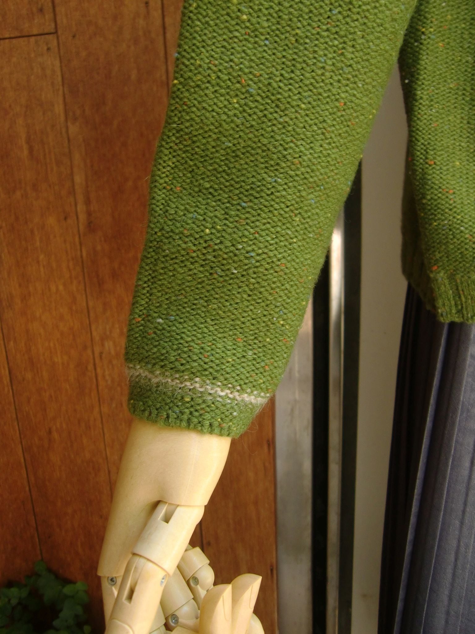 袖の左右に細い異なるモヘヤの配色が入っています。