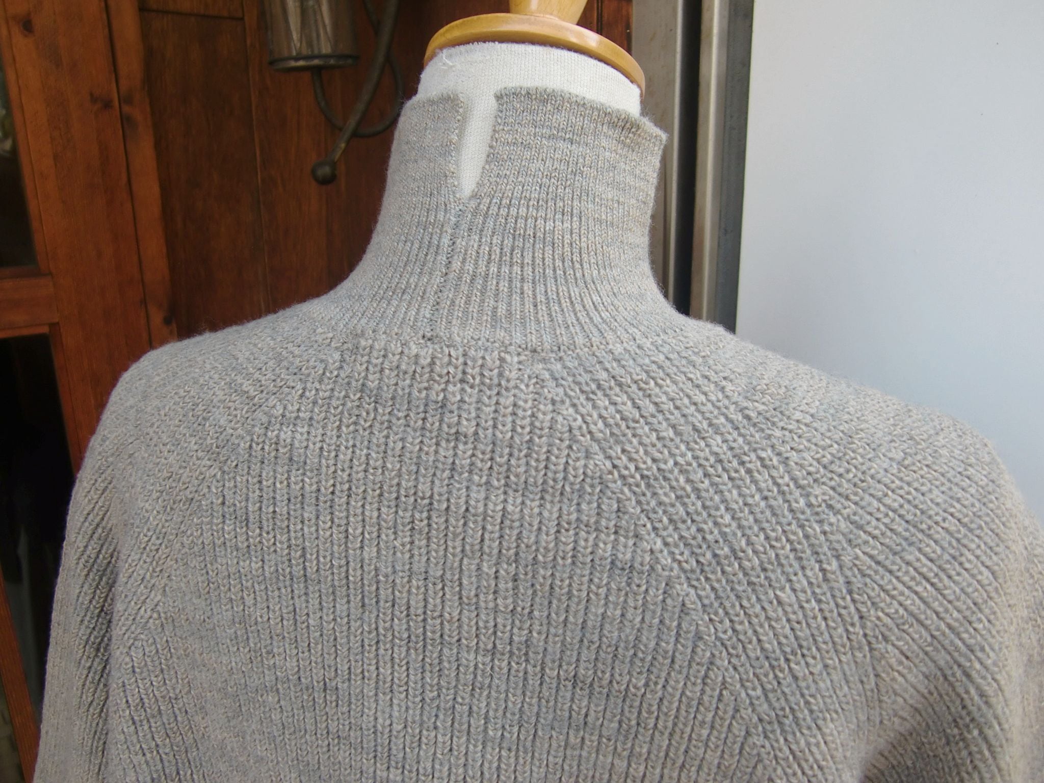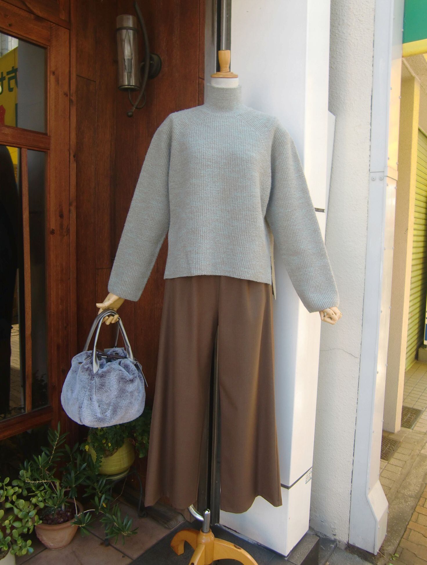 デザインは、ラグラン部分の減らし目がアクセントになったハイネックプルオーバーニット。