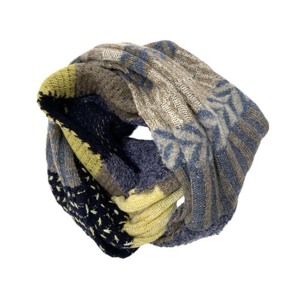 ◇ヘリンボンジャカードとブークレー、編み地ミックスのリバーシブル・スヌードです。