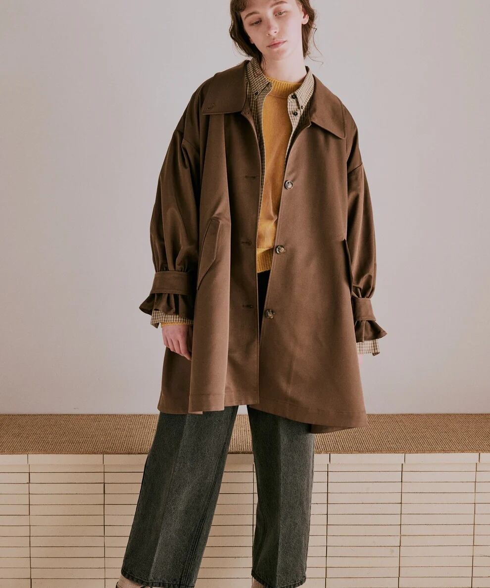 ◇テントラインに広がるシルエットが特徴的なコートです。