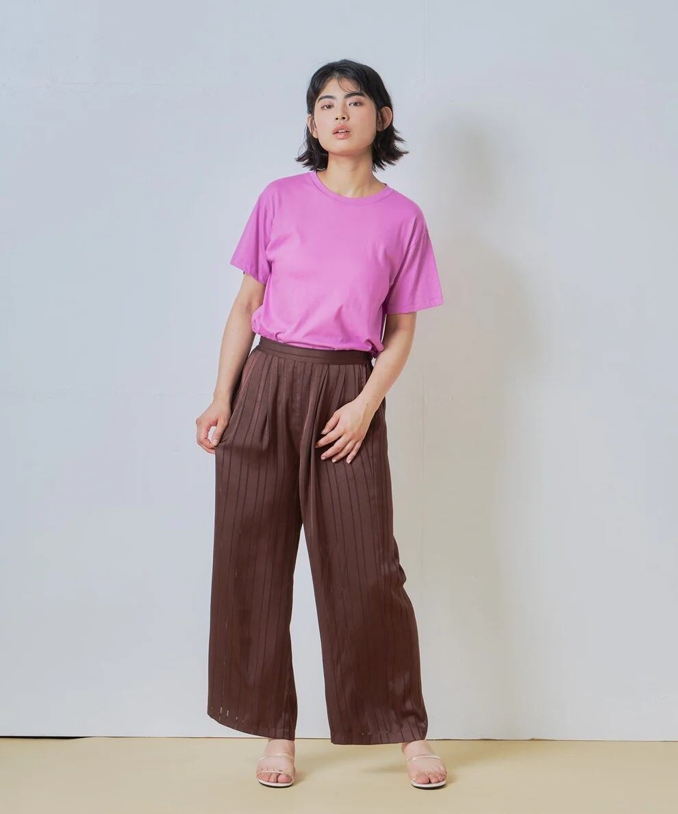 ◇サテンの光沢と発色の良いカラーでキレイめ感をUPさせるタックパンツです。
