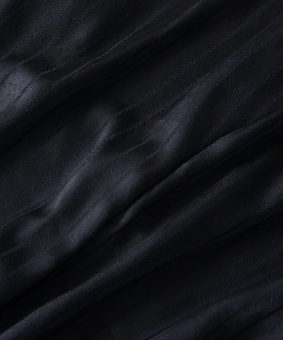 サテン生地に入れた繊細なストライプ状の折刺繍が特徴的なアイテム。
