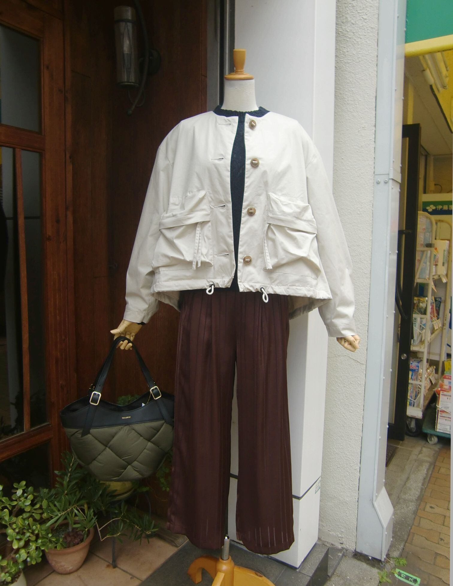 コンパクトなレングスなのでストンとしたシルエットのワンピースと組み合わせても