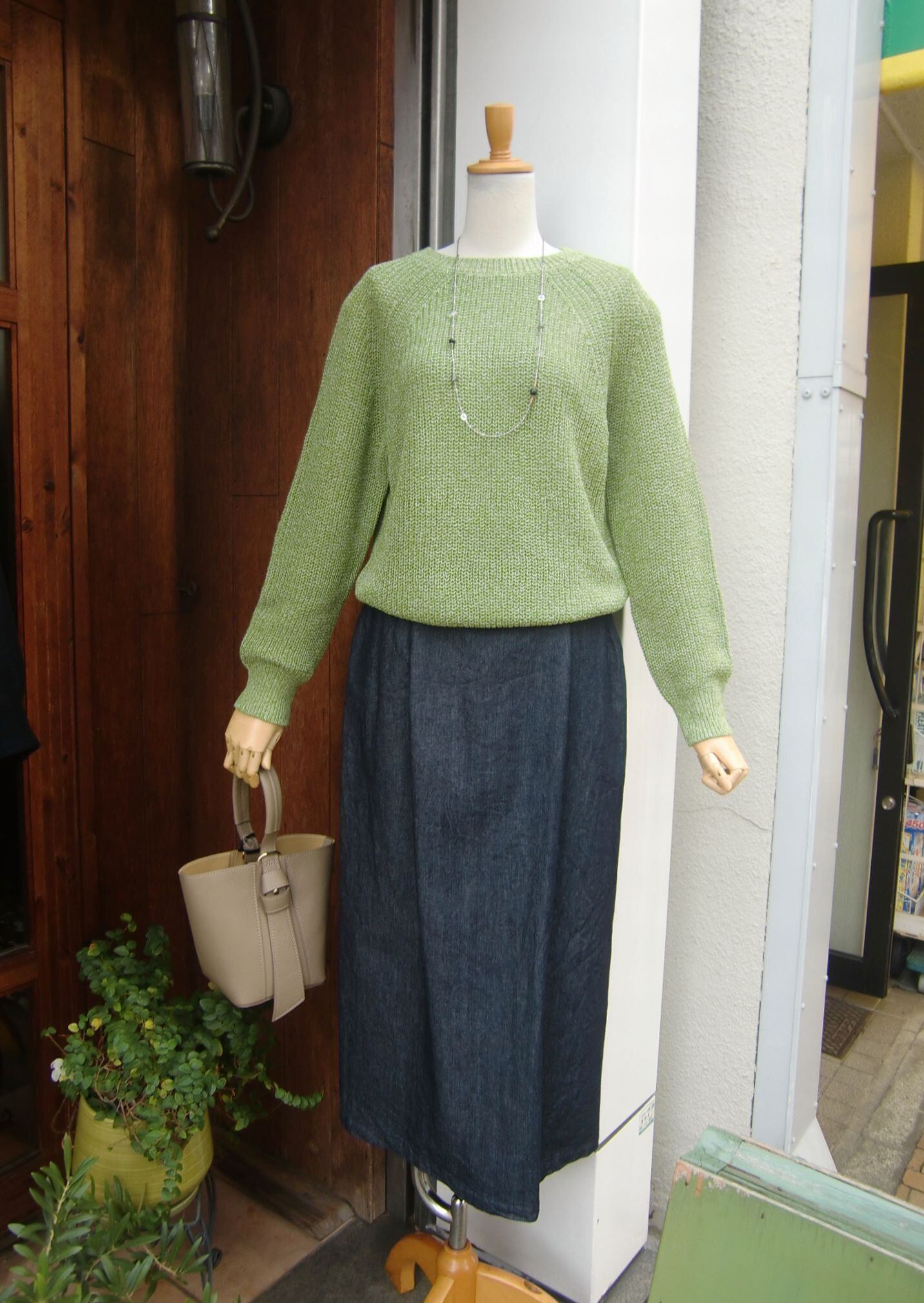 その糸をオリジナルカラーで3杢に撚糸したミックスカラーが綺麗なニットです。