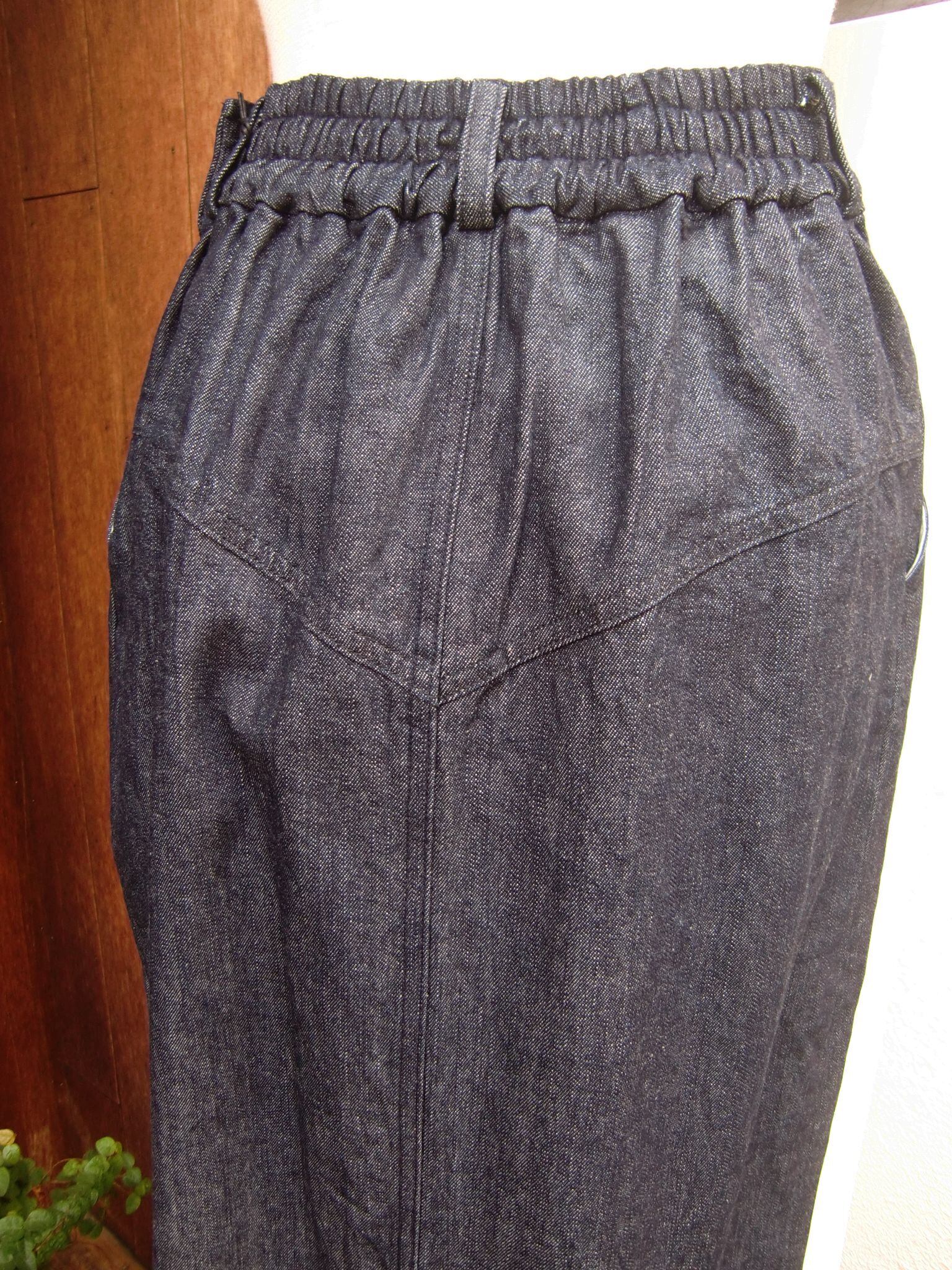 ◇10オンスのムラ糸デニムを使った≪マノン≫タイトシルエットスカート。