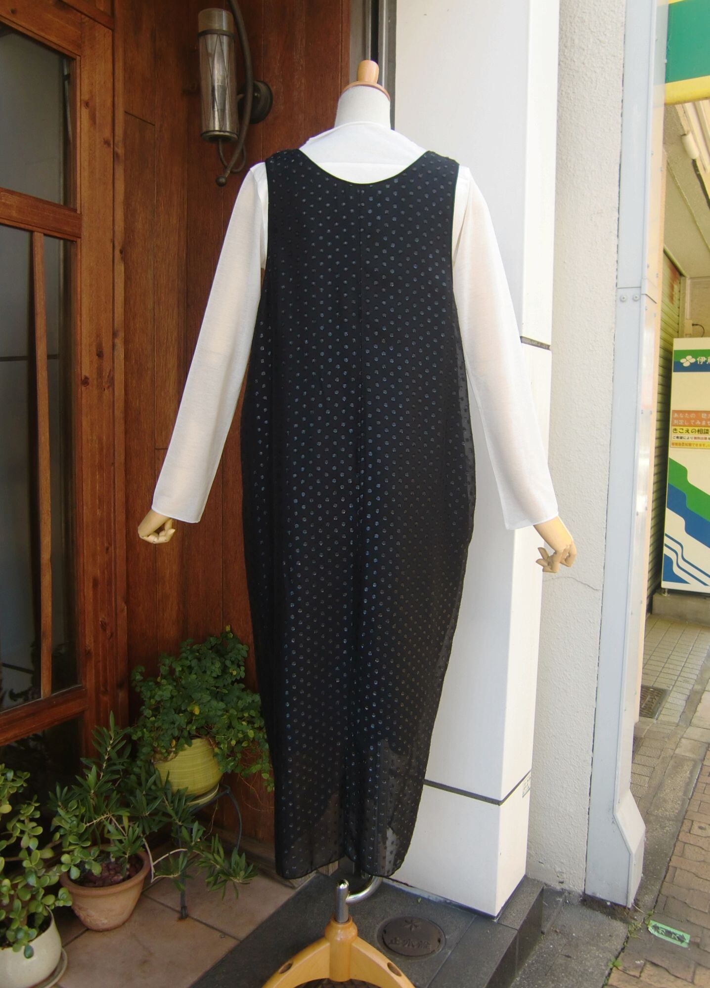 バストから裾にかけて窄まるコクーンフォルムに仕上げてあります。