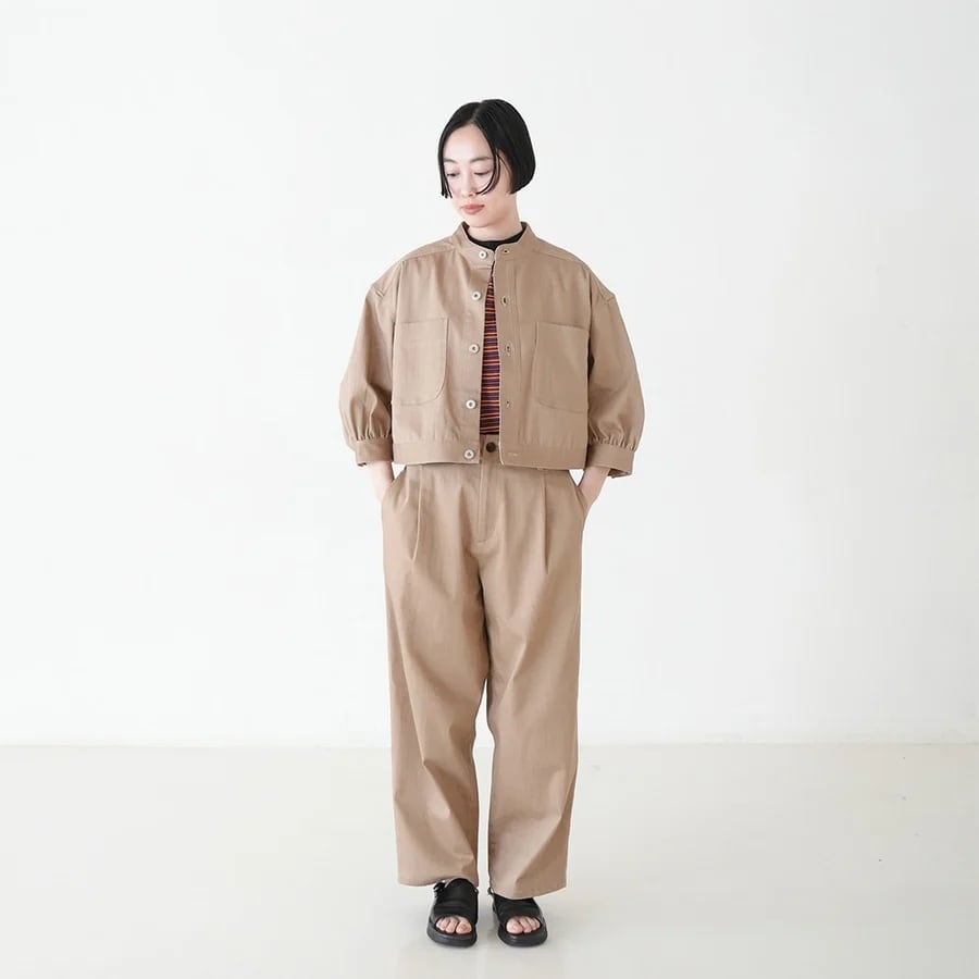 袖口ギャザーで程よいボリュームを持たせた7分袖のジャケット。