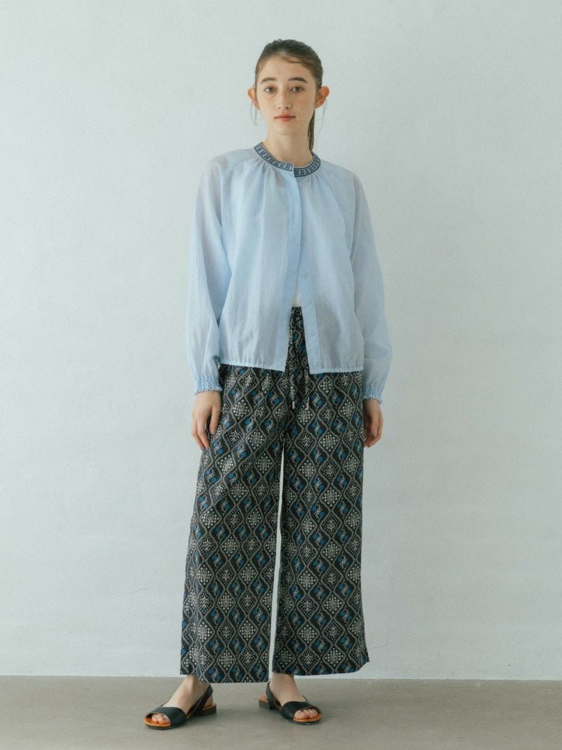 ◇セミワイドなシルエットにくるぶし丈でスッキリ穿けるプリントパンツ。