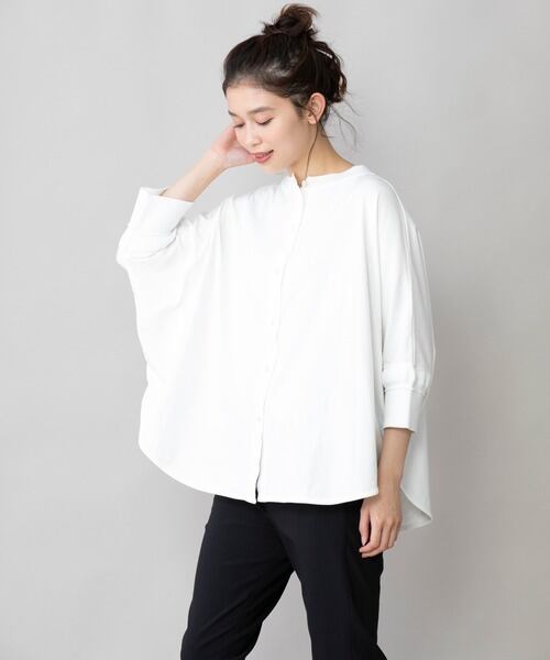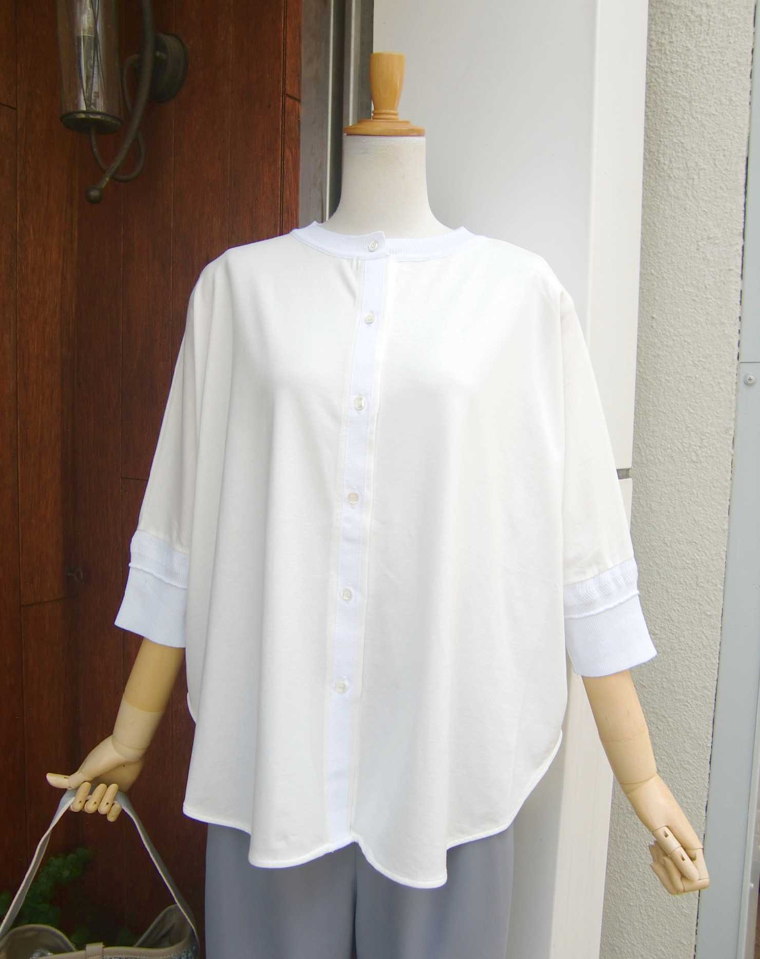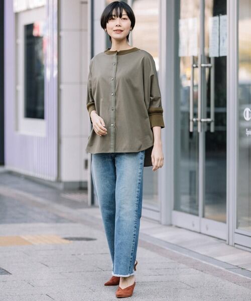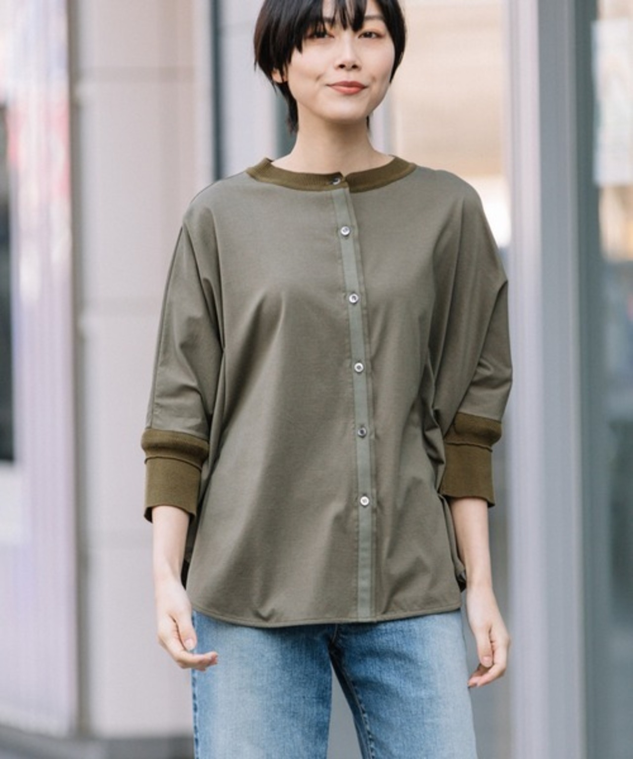 ゆったりとした身幅に袖リブをドッキングさせたデザイン、