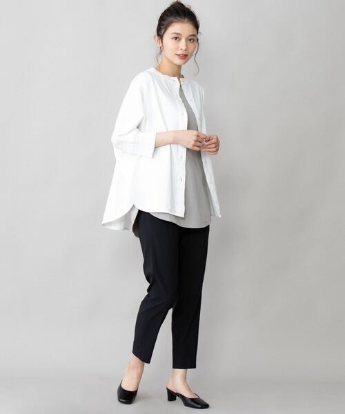 裾はラウンドヘムにする事で丸みのある女性らしい雰囲気をプラス。