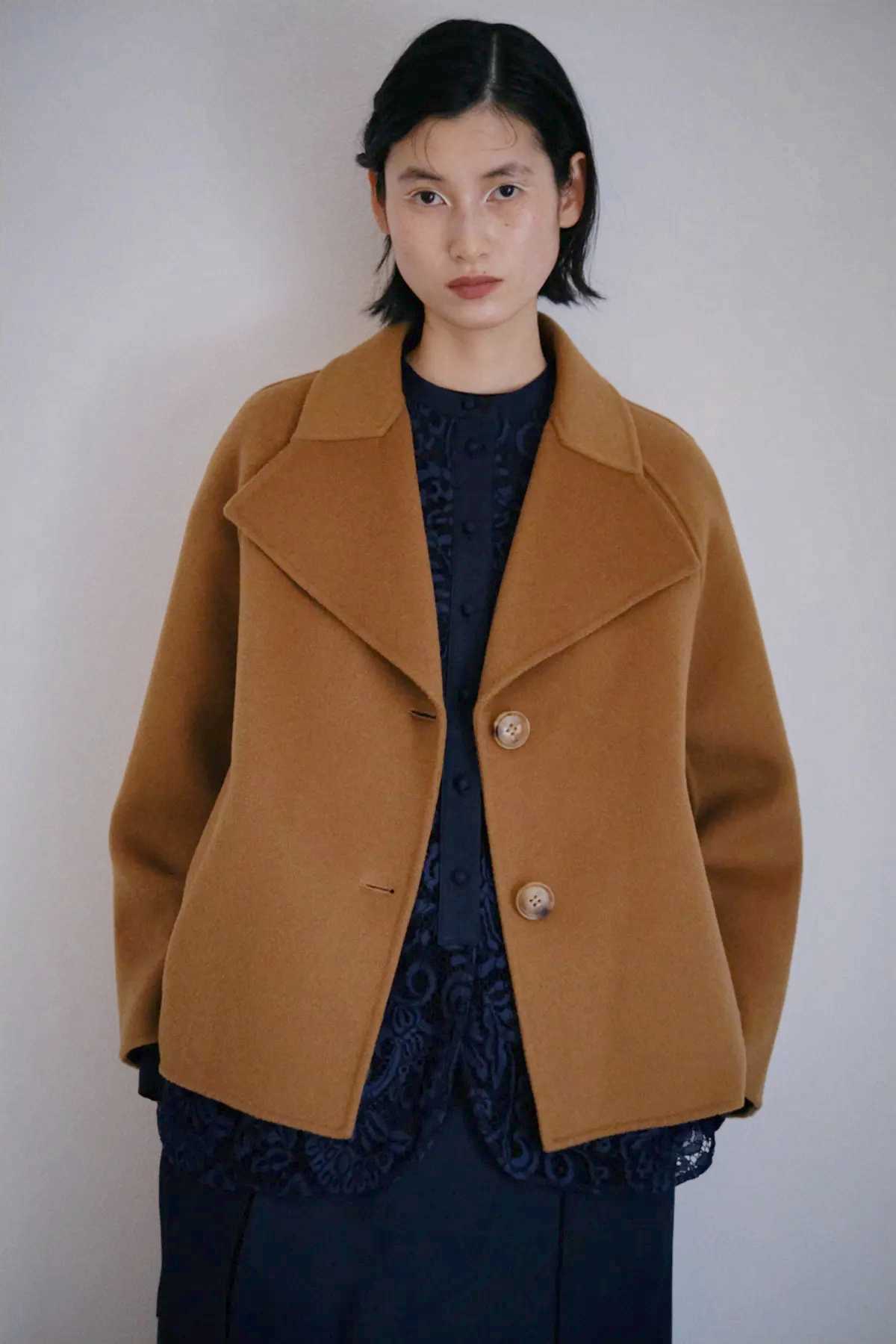 変形テーラーカラーで程良くカジュアルにまとめた一着。