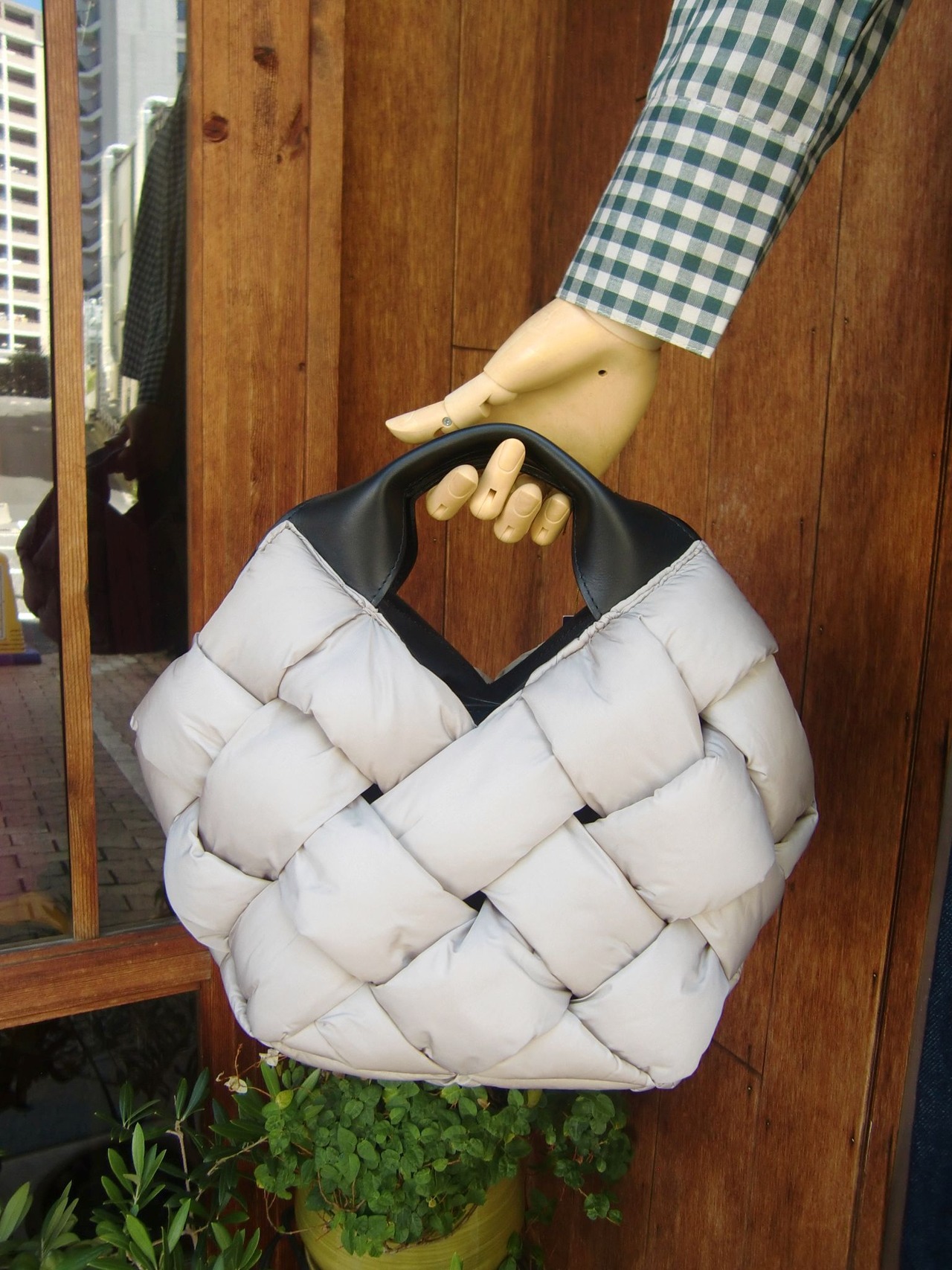 持ち手ハンドルのレザー使いでカジュアルになり過ぎず、