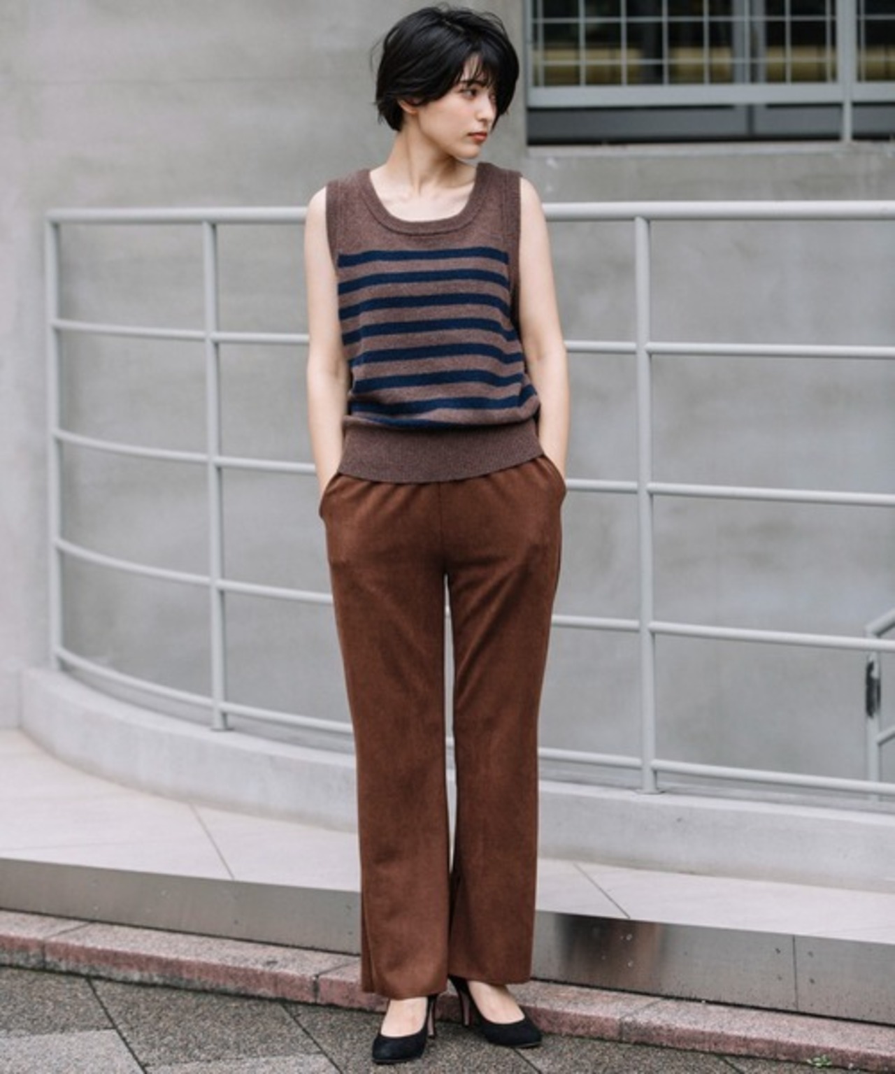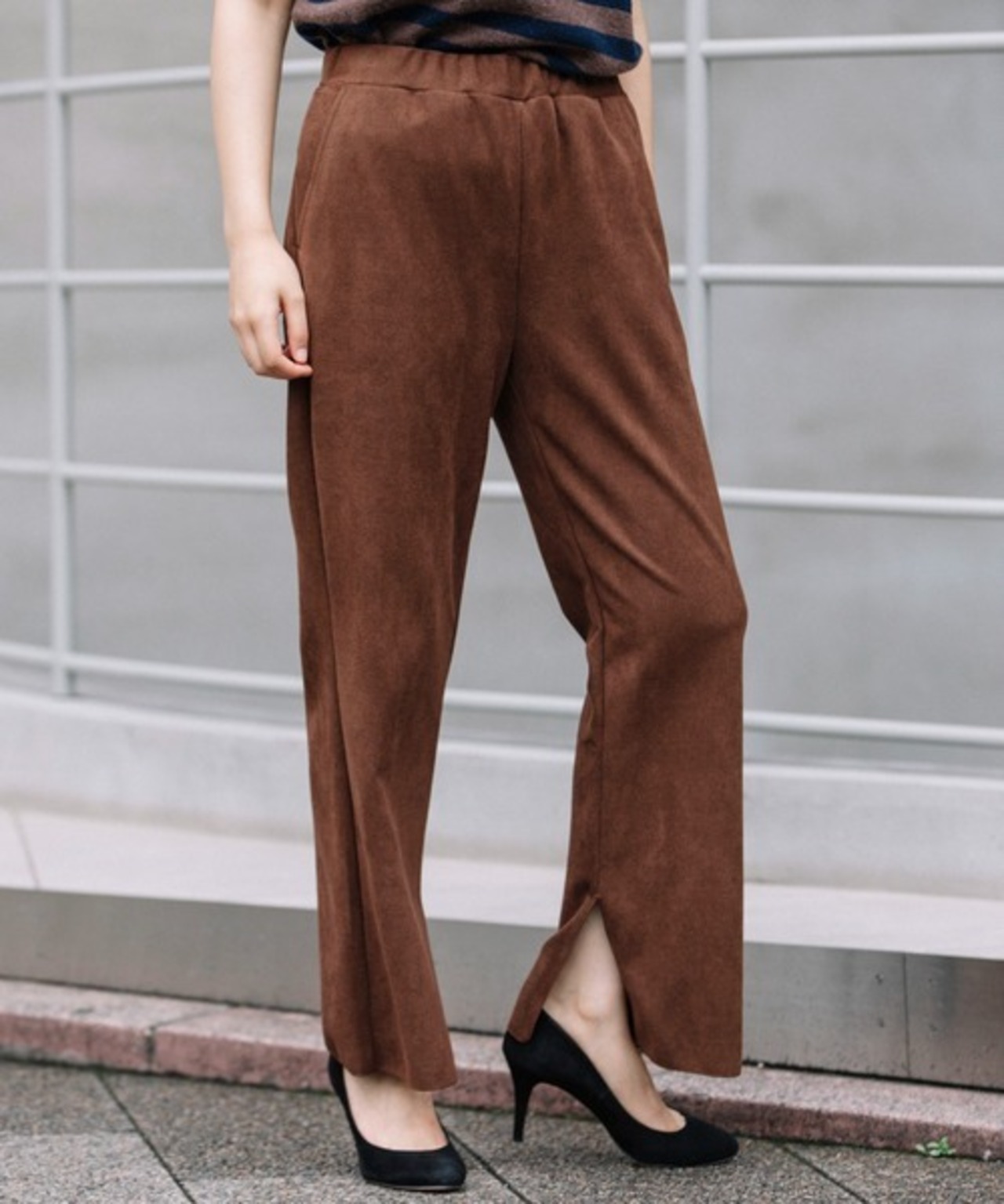 サスティナブルピケスエードを使ったキレイめにも使えるカジュアルパンツ。