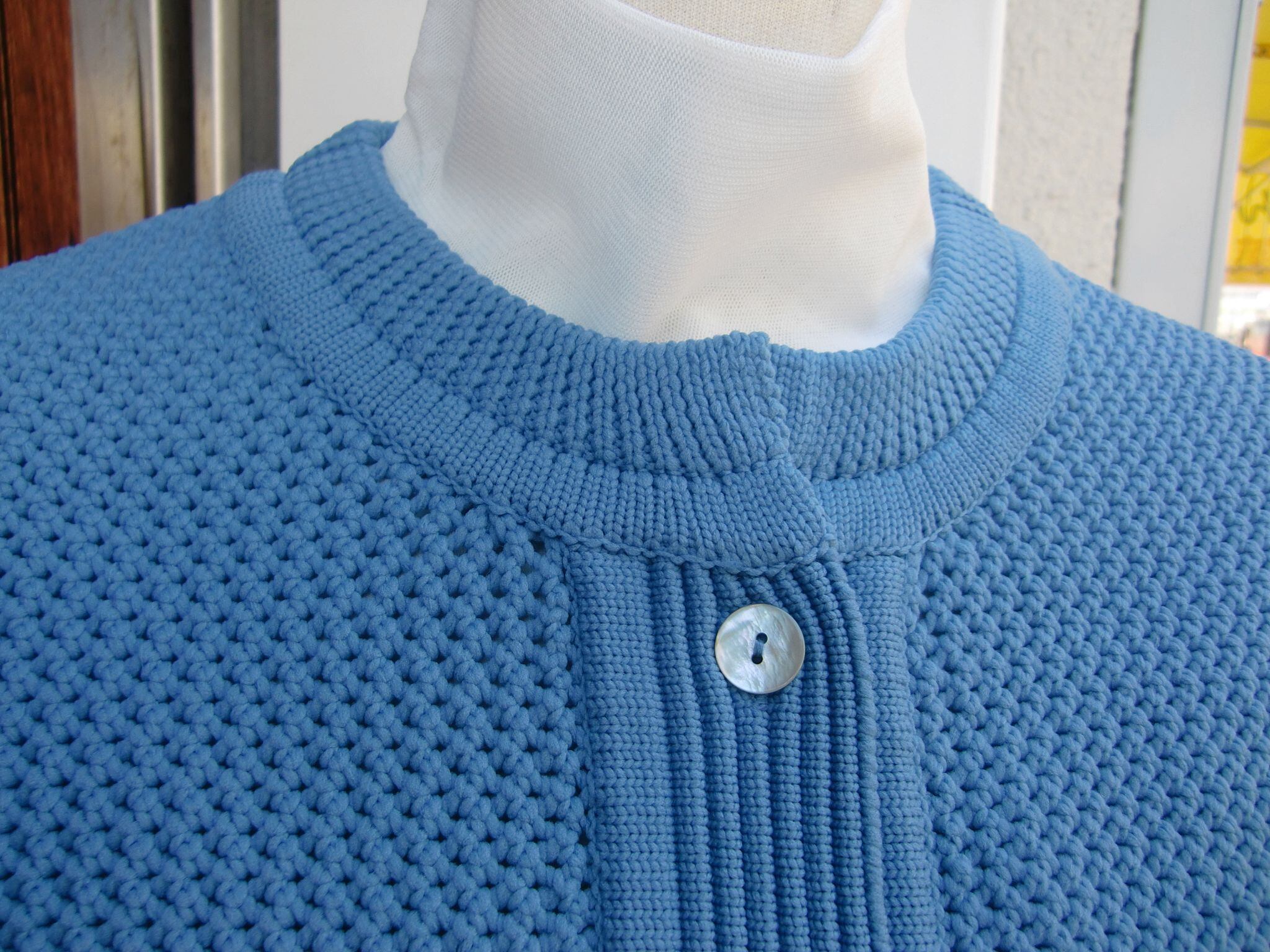 白の天然貝釦が爽やかな印象で春を感じさせてくれます。