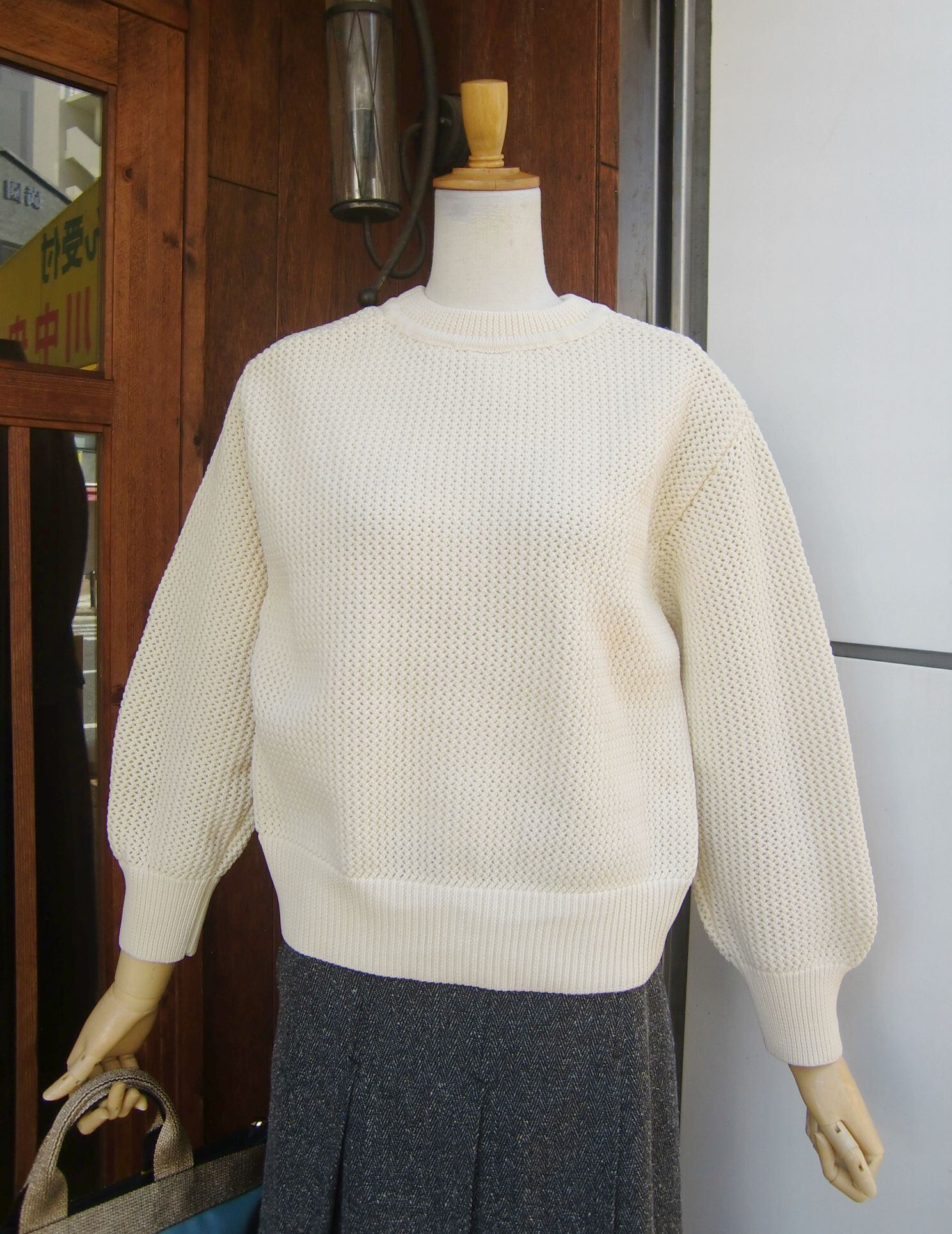 小さな起伏のある特徴的な編地はシルエットが崩れにくく、