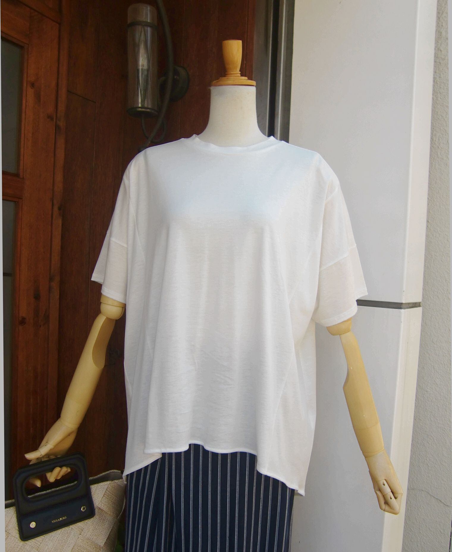 前に対して後の着丈を長くして横からのシルエットに特徴を持たせつつ、